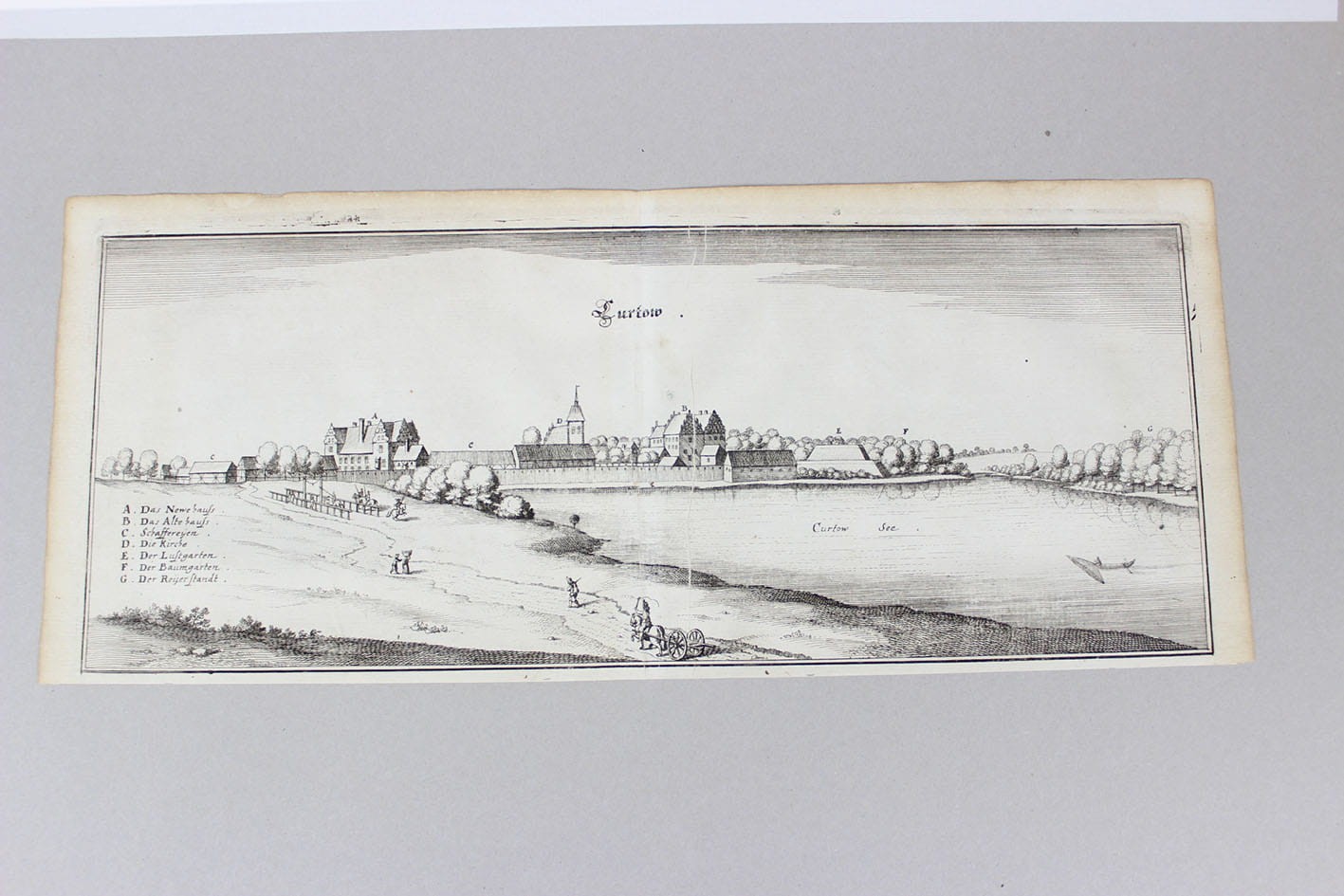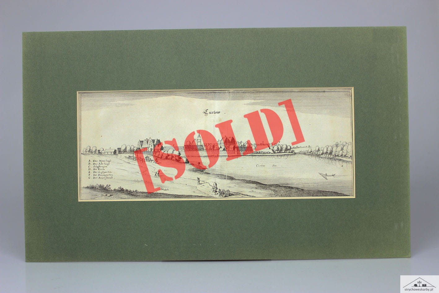 Oryginalny miedzioryt przedstawiający panoramę wsi sołeckiej Korytowo ( niem.Kürtow) położonej w województwie zachodniopomorskim w powiecie choszczeńskim w gminie Choszczno. Miedzioryt pochodzący z:Topographia Electoratus Brandenburgici et Ducatus Pomeraniae M. Zeillera, wydawnictwo spadkobiercy Matthäusa Meriana, Frankfurt n. Menem 1652 rok. Stan zachowania dobry. Całość w passe partout. Wymiary: