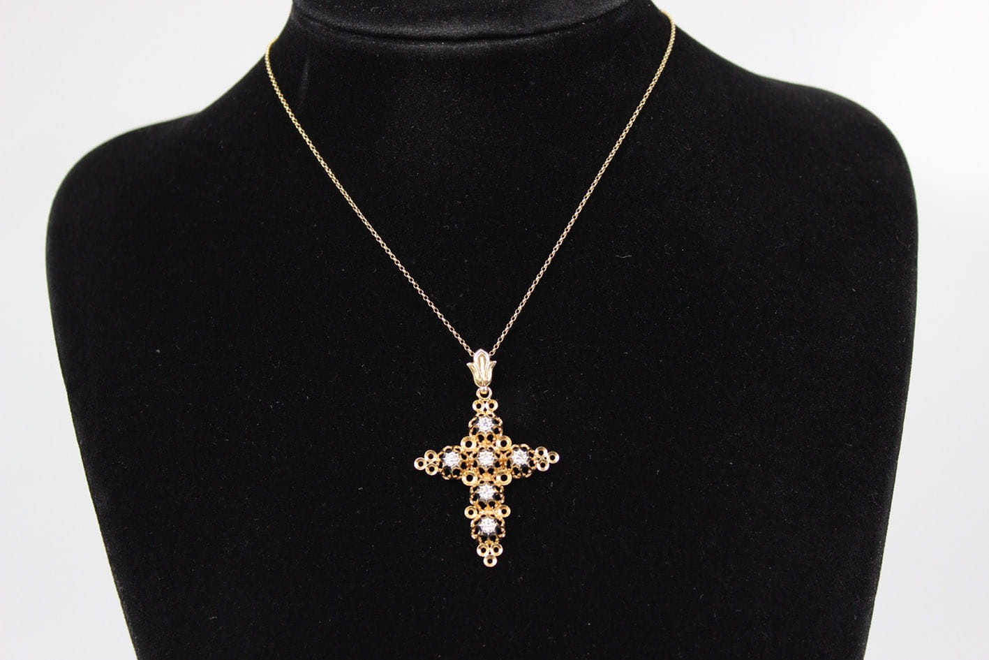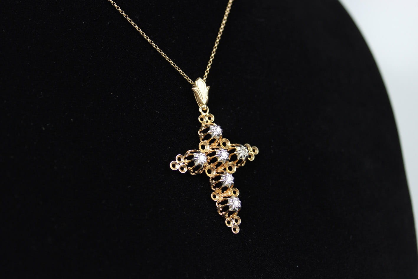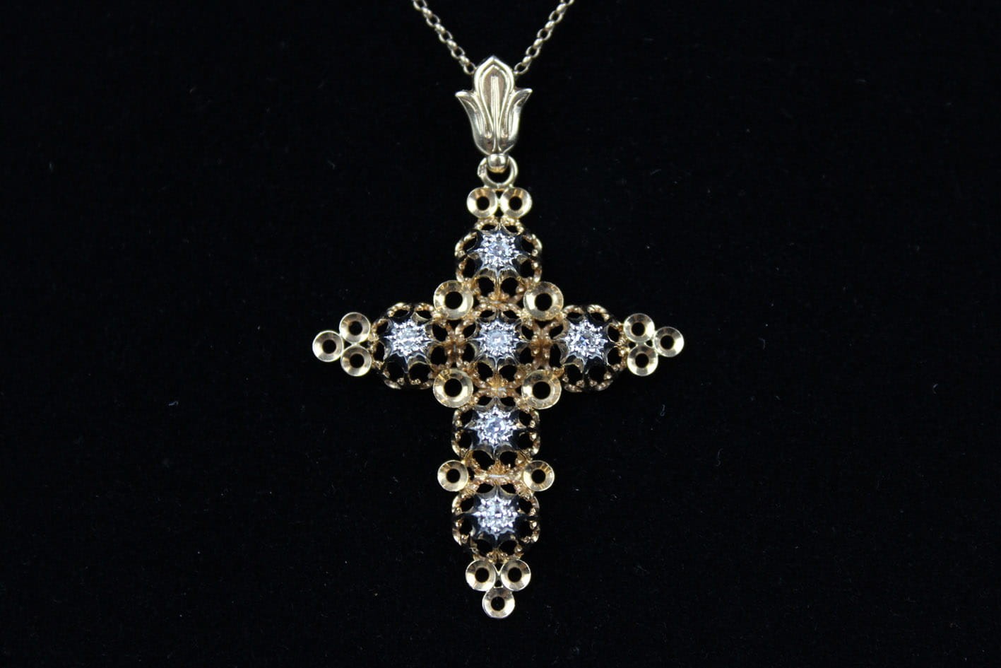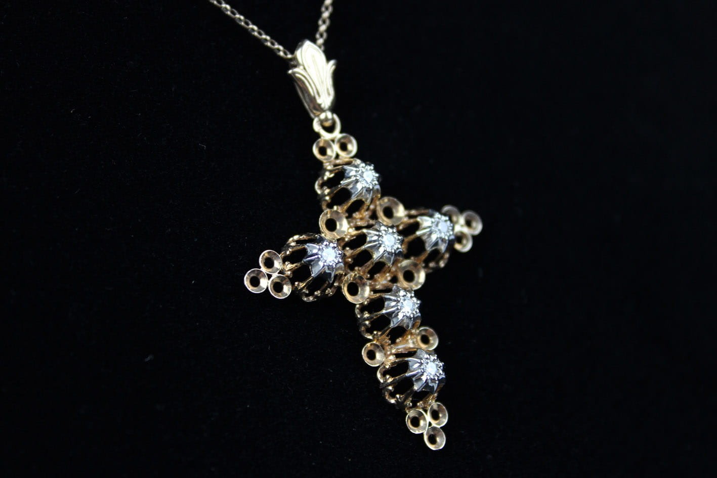 ANTYCZNA ZŁOTA ZAWIESZKA KRZYŻ Z DIAMENTAMI