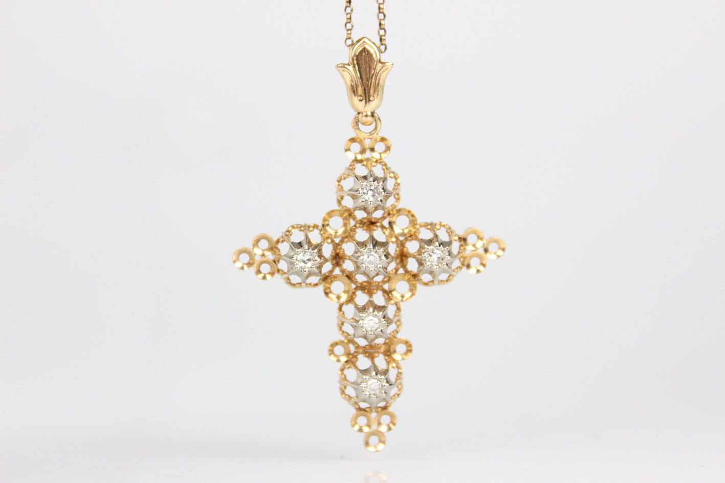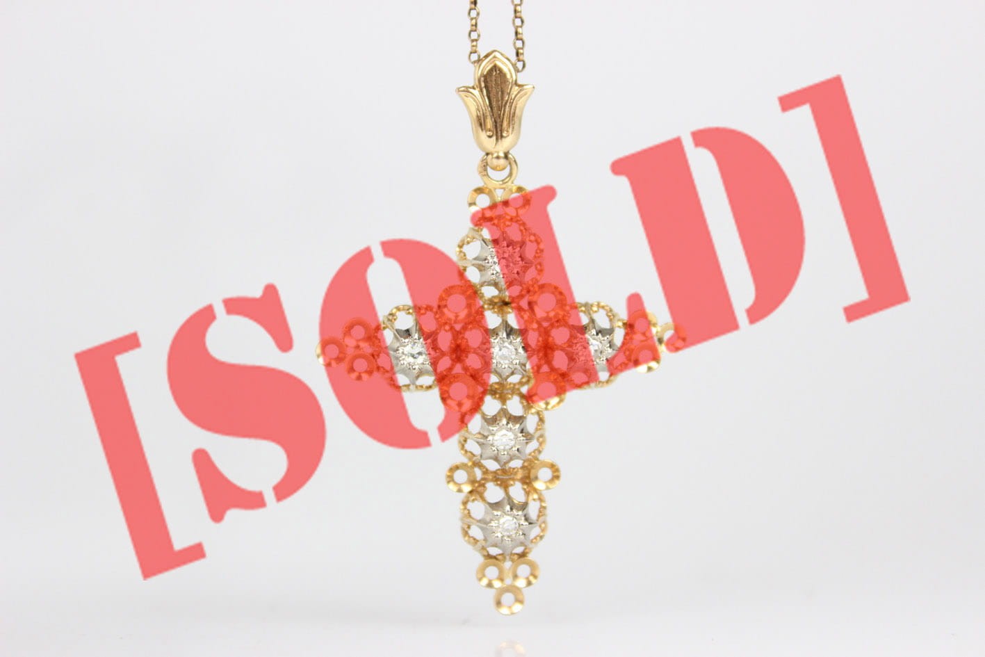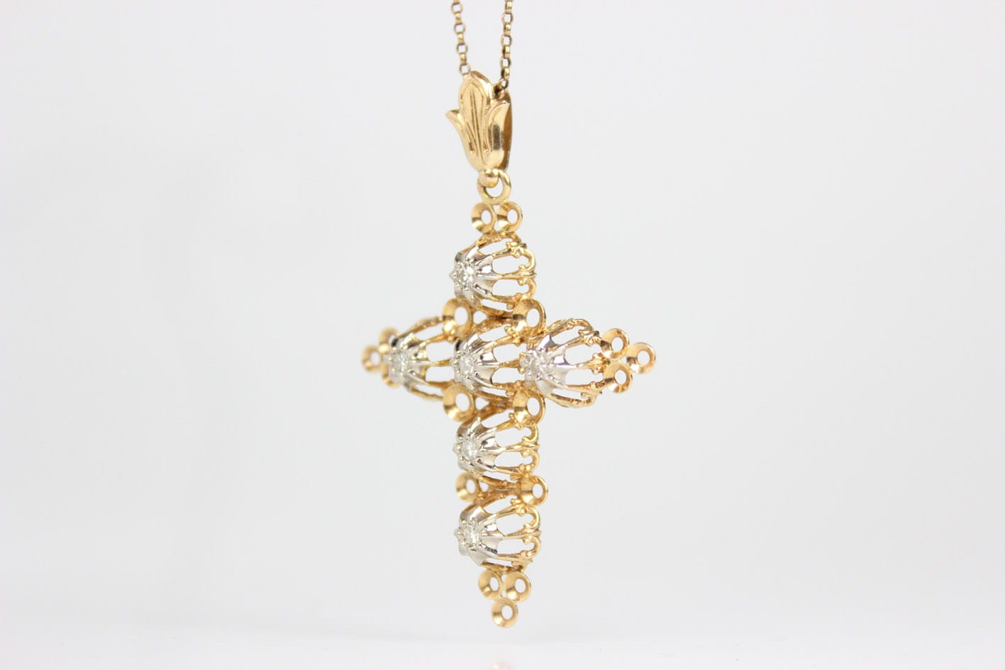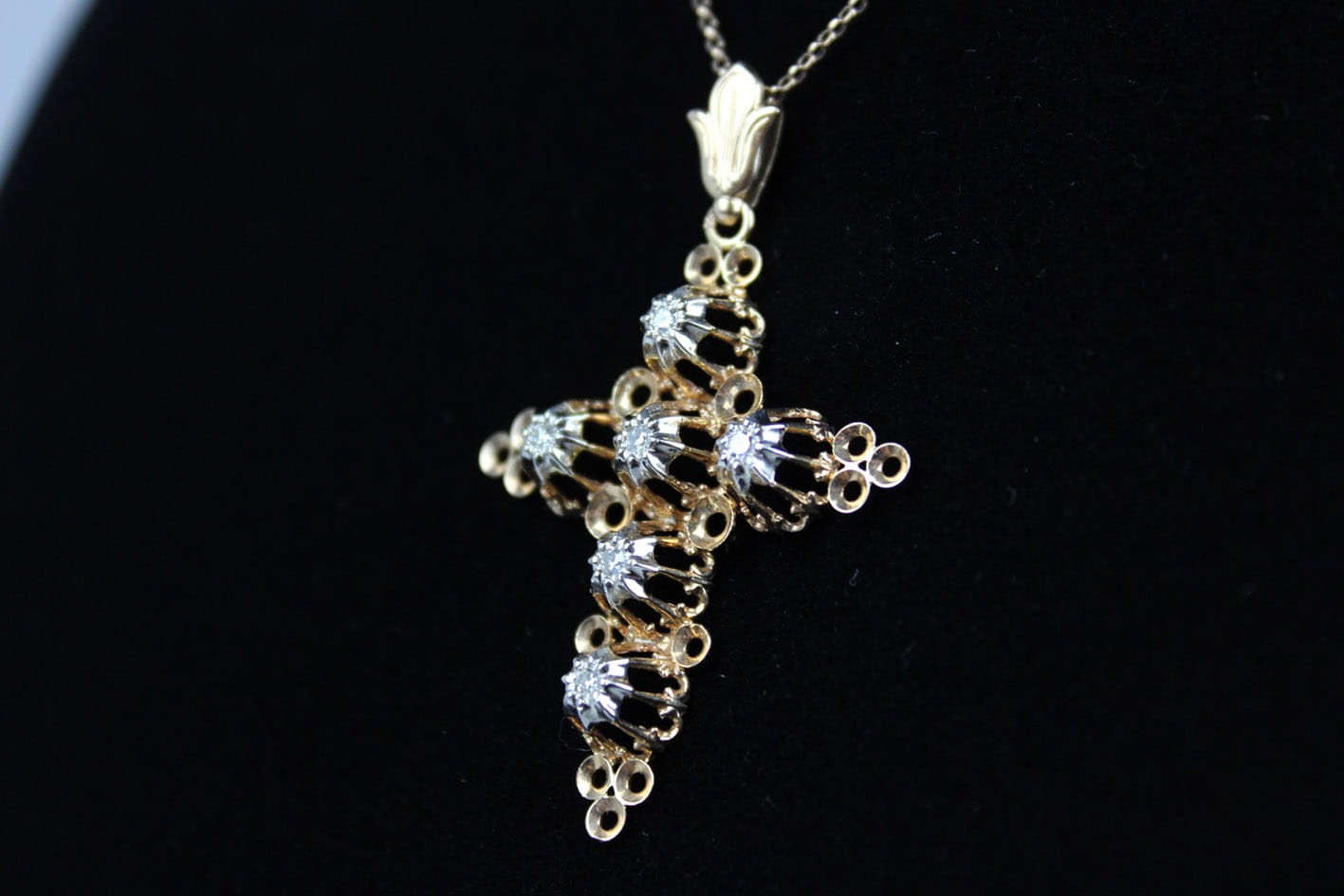 ANTYCZNA ZŁOTA ZAWIESZKA KRZYŻ Z DIAMENTAMI
