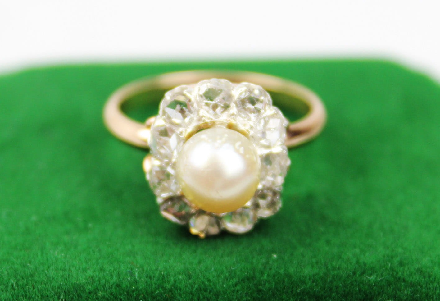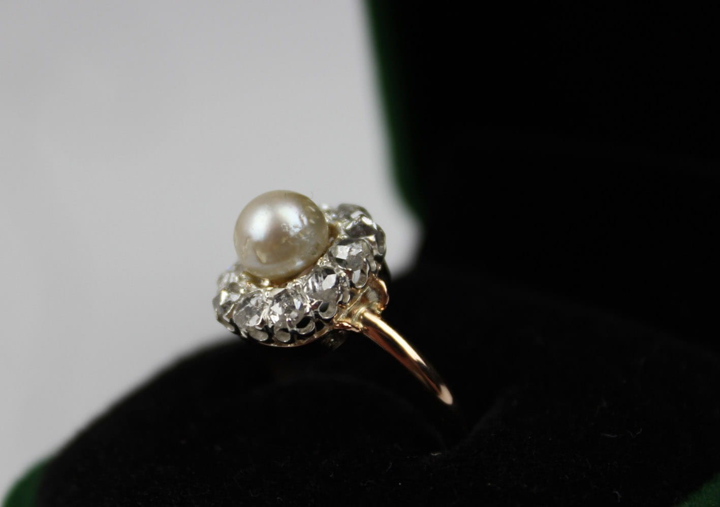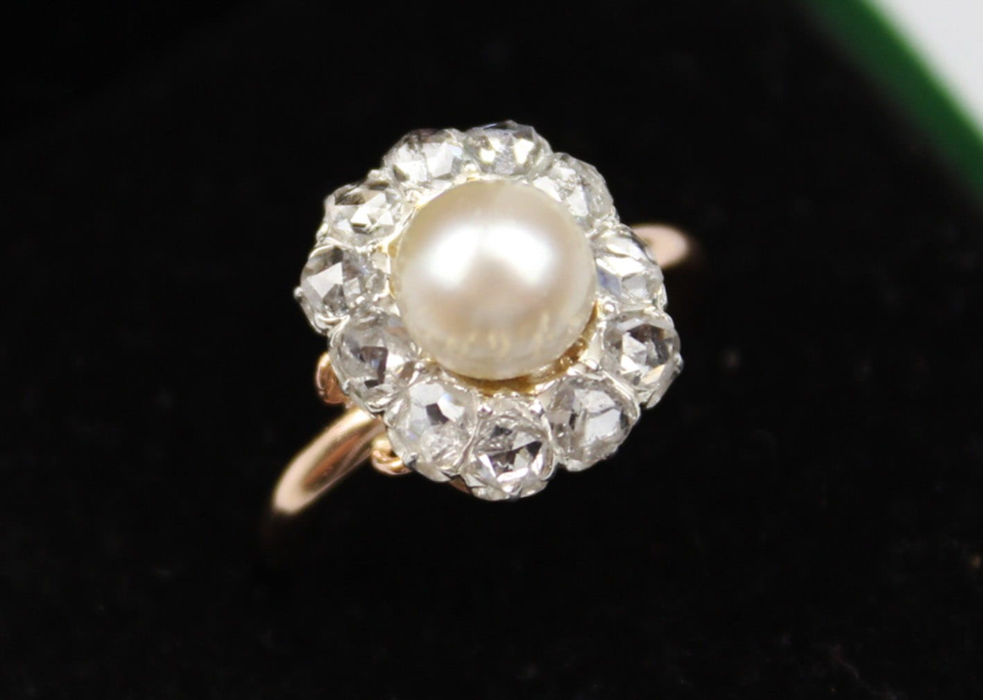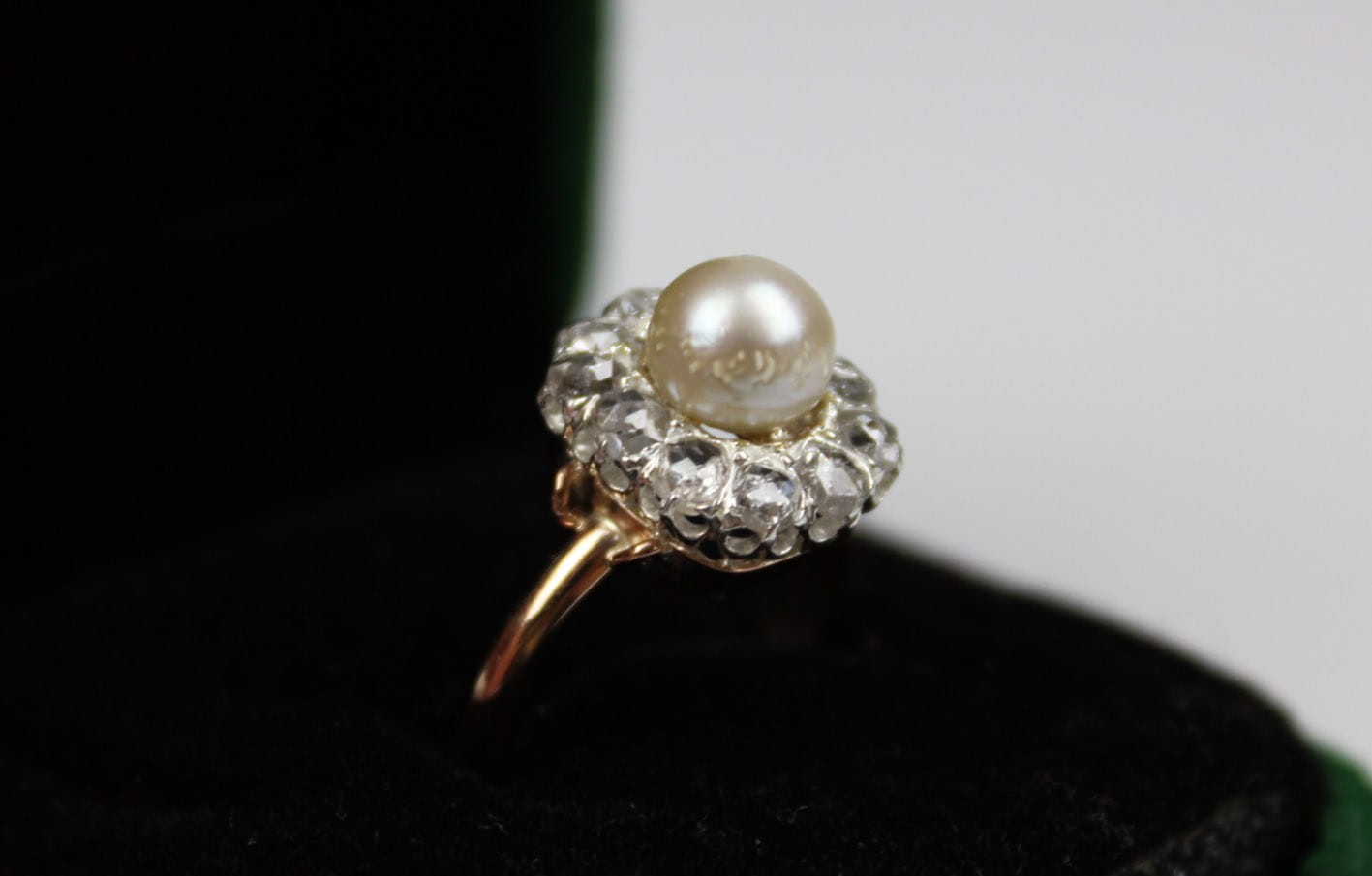 ANTYCZNY PIERŚCIONEK Z PERŁĄ I DIAMENTAMI ZŁOTO