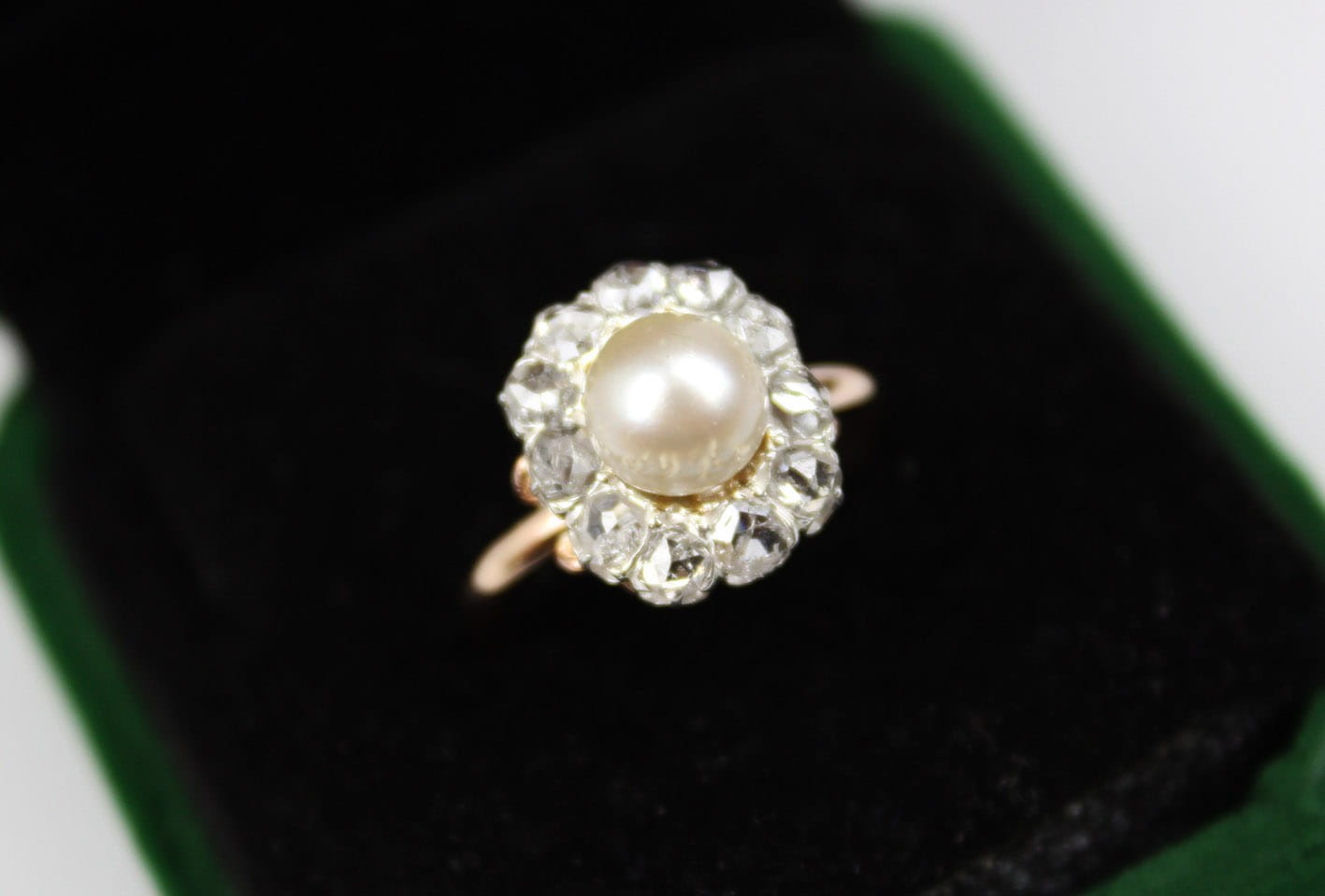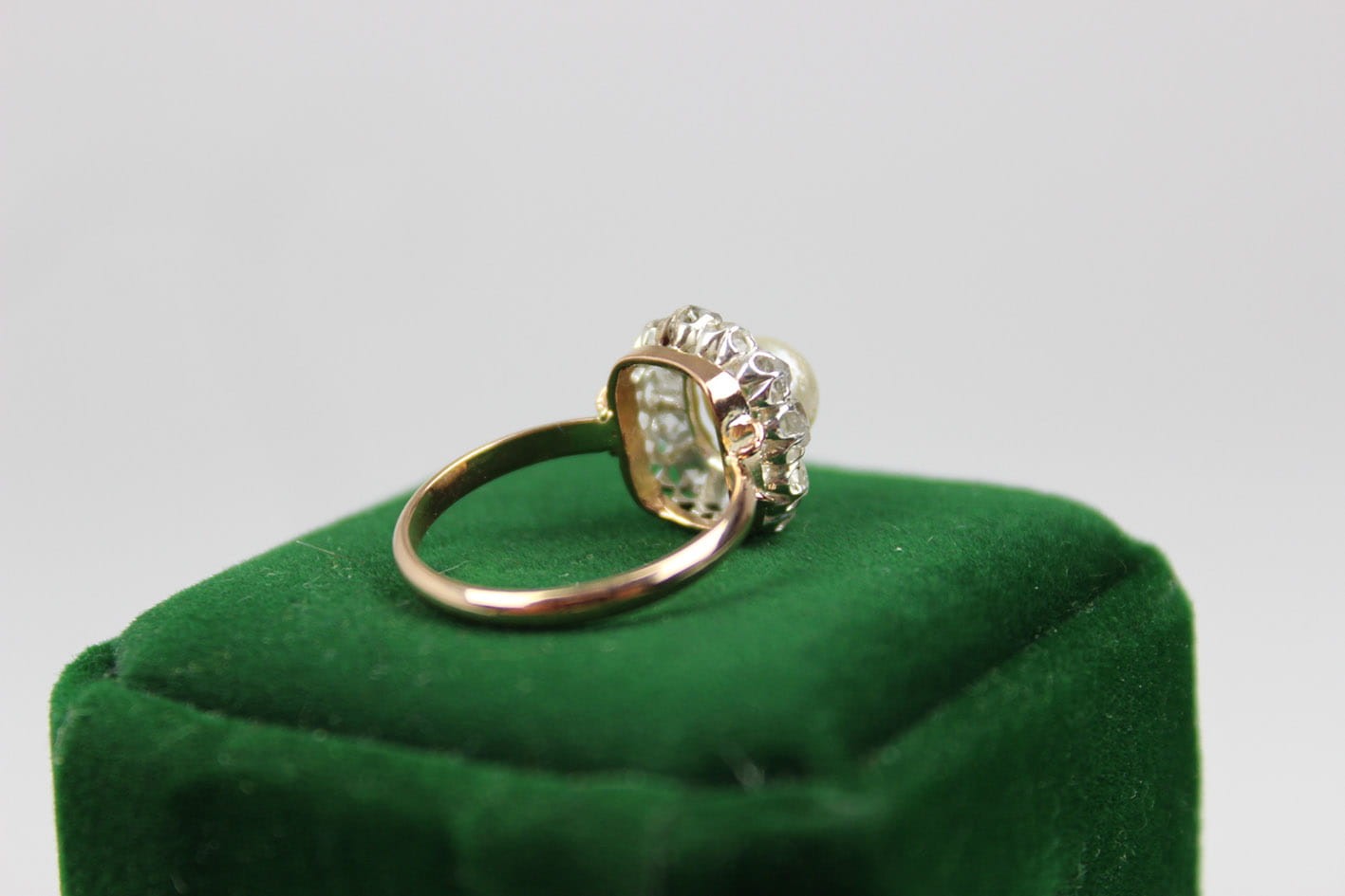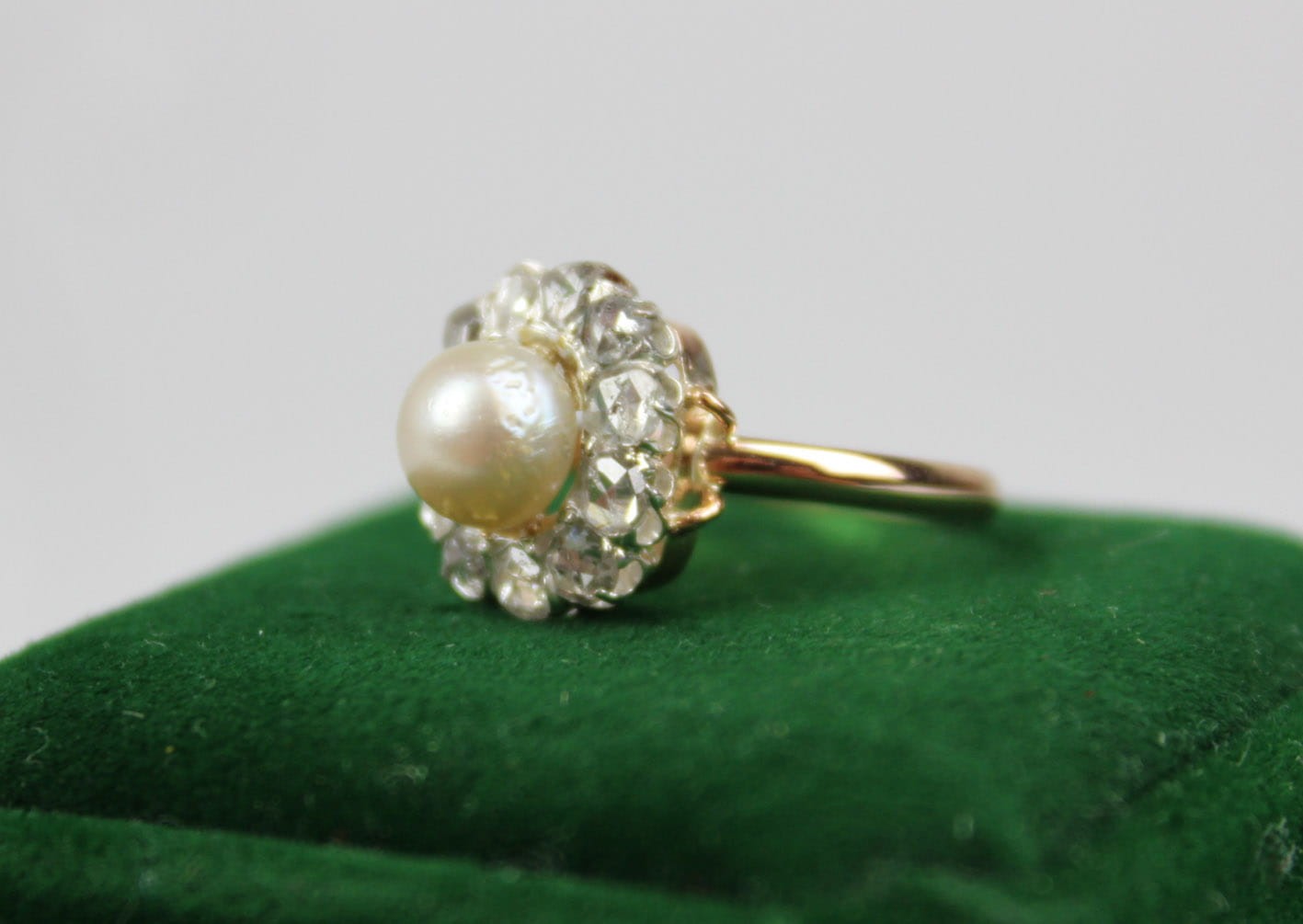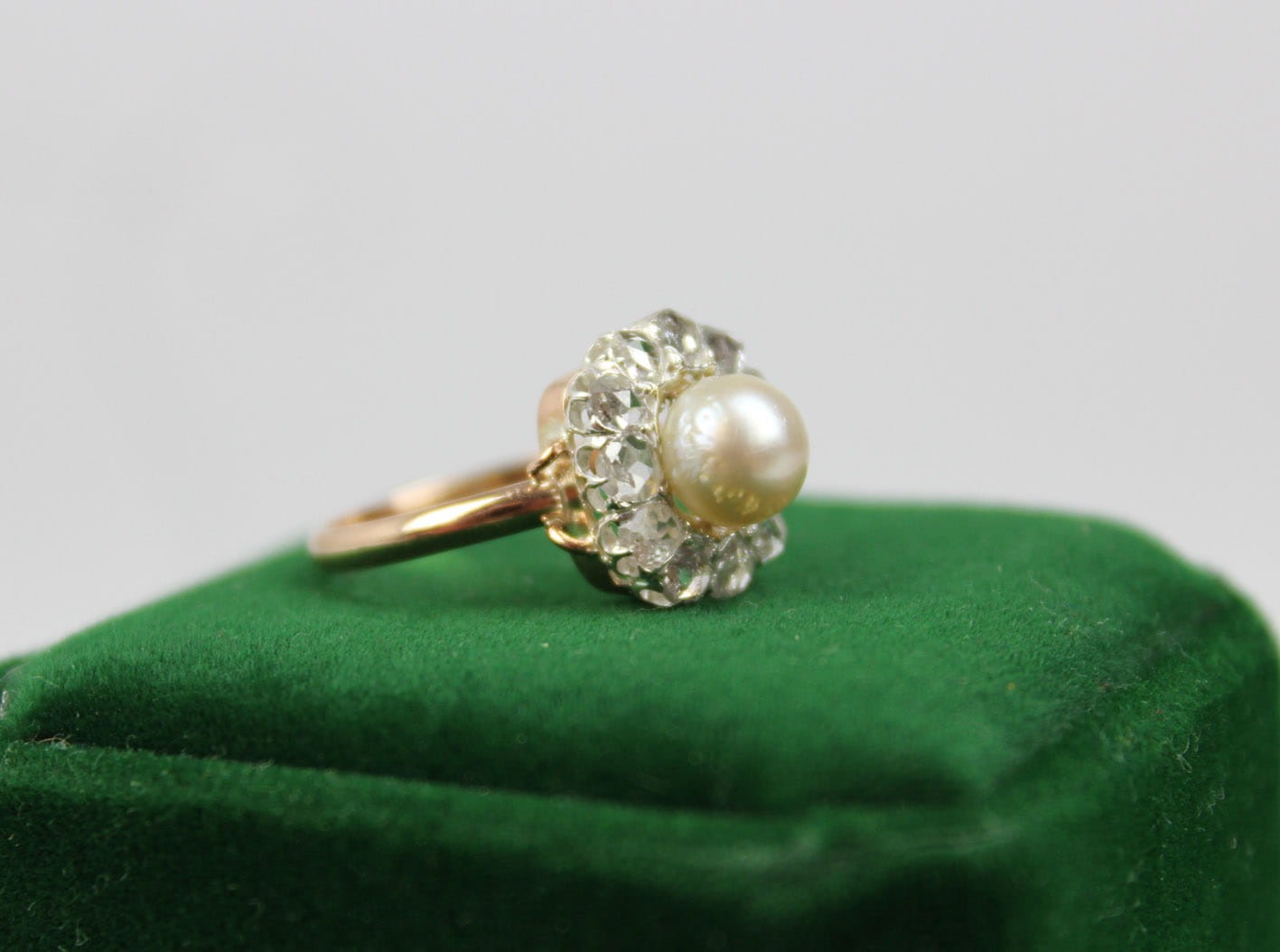 ANTYCZNY PIERŚCIONEK Z PERŁĄ I DIAMENTAMI ZŁOTO