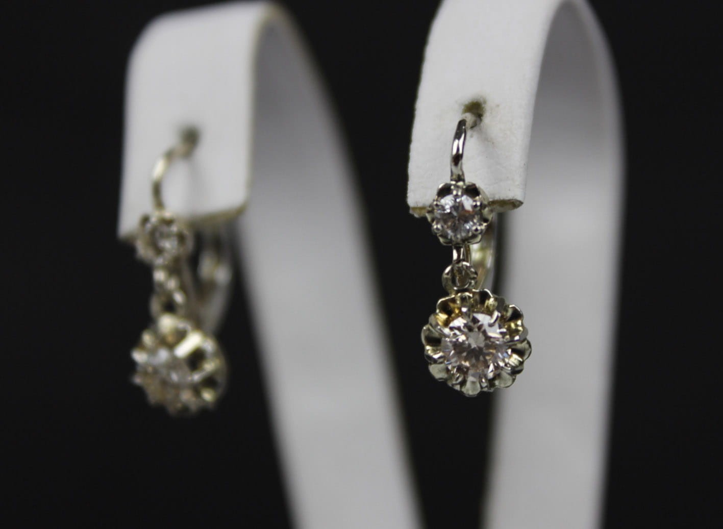 ART DECO ZŁOTE KOLCZYKI Z DIAMENTAMI