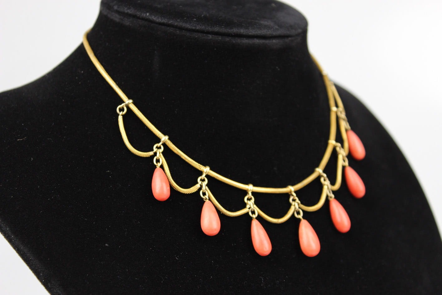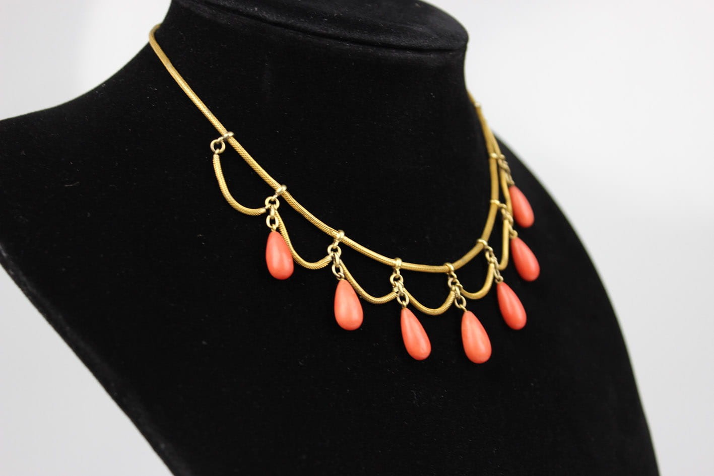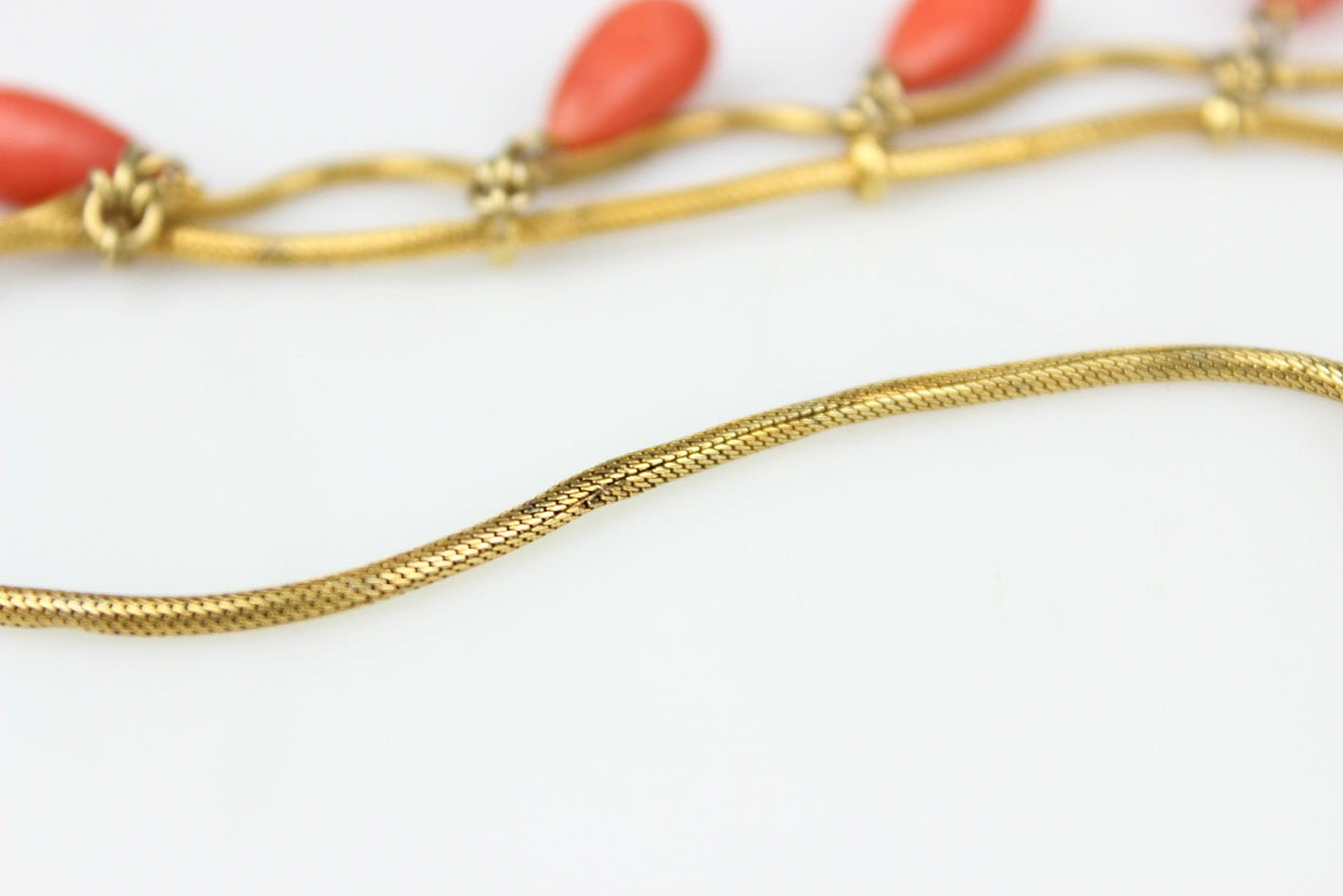 ART DECO ZŁOTY NASZYJNIK Z KORALOWYMI SOPLAMI