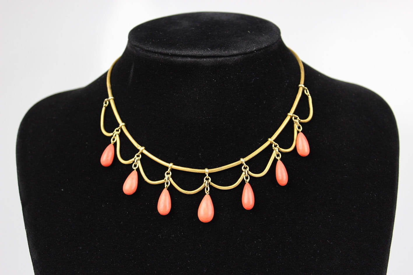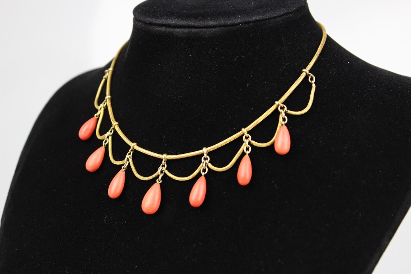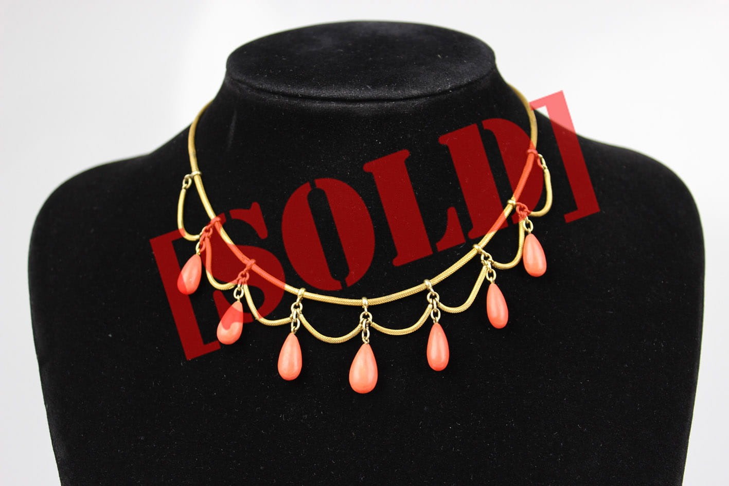 ART DECO ZŁOTY NASZYJNIK Z KORALOWYMI SOPLAMI