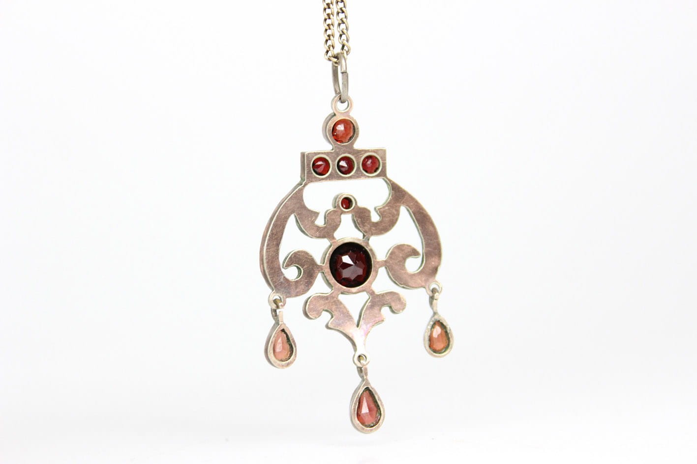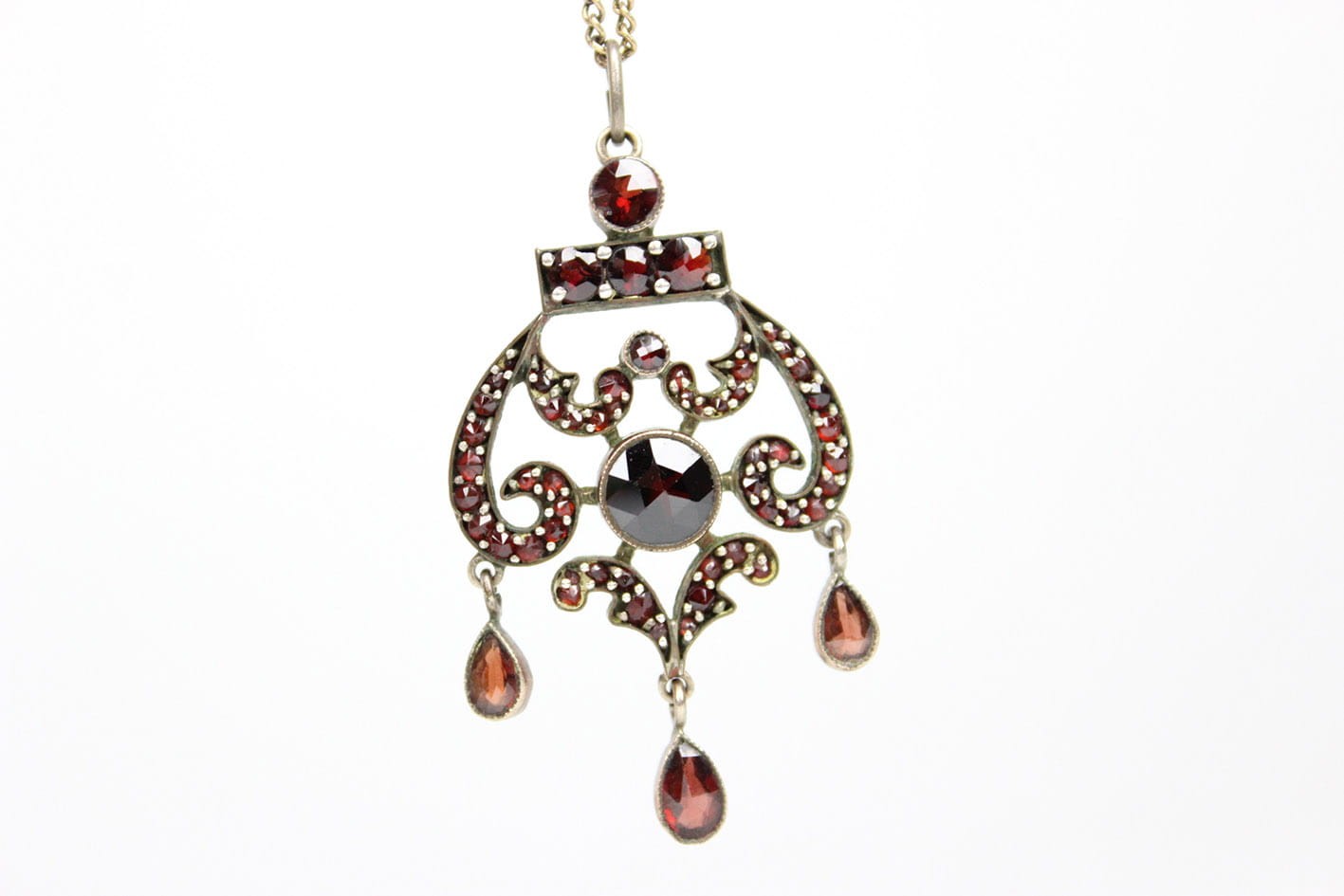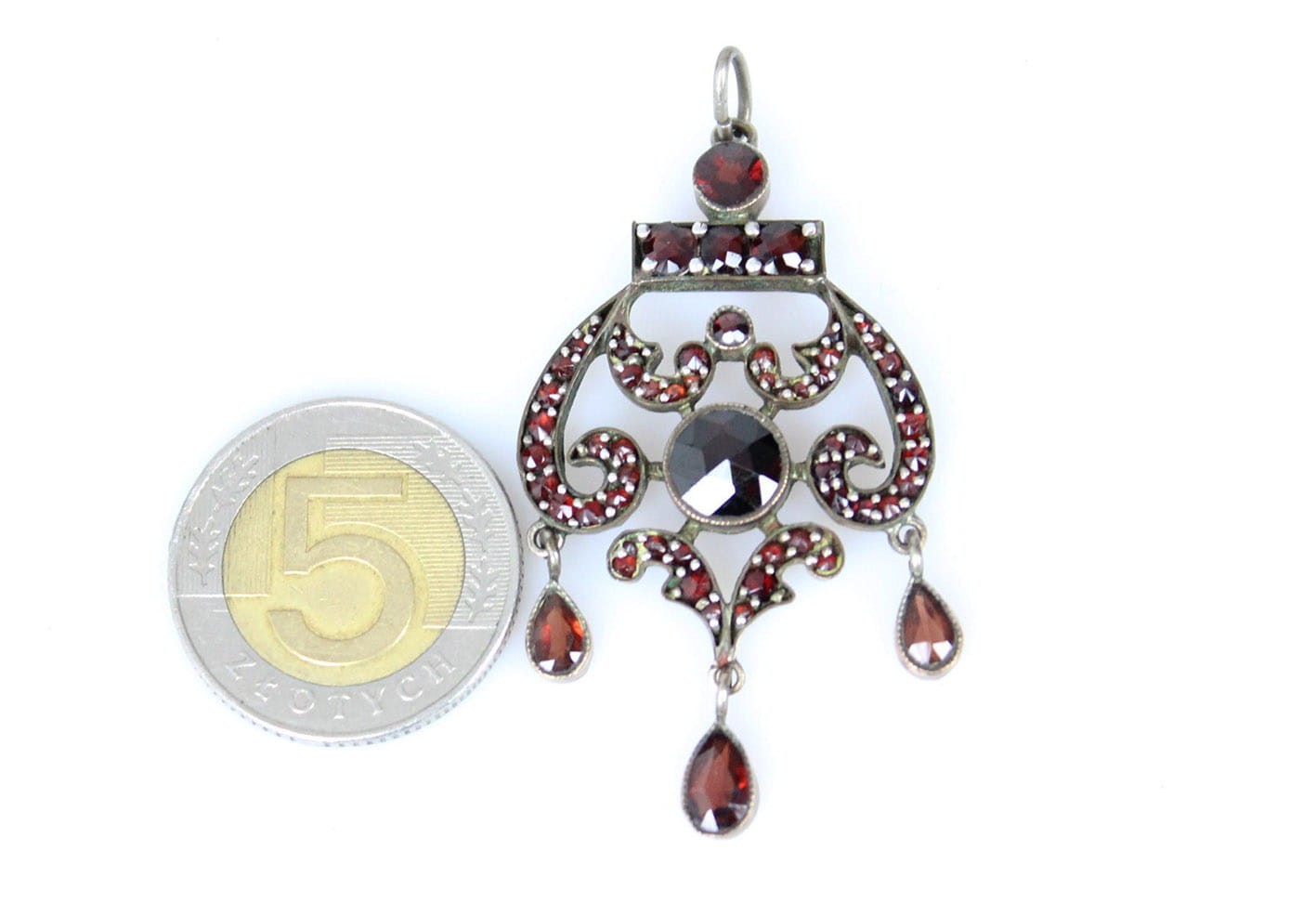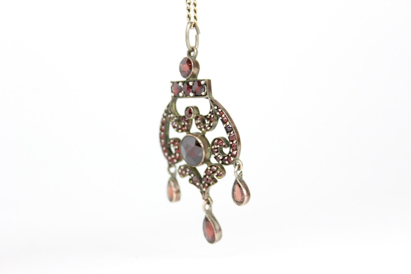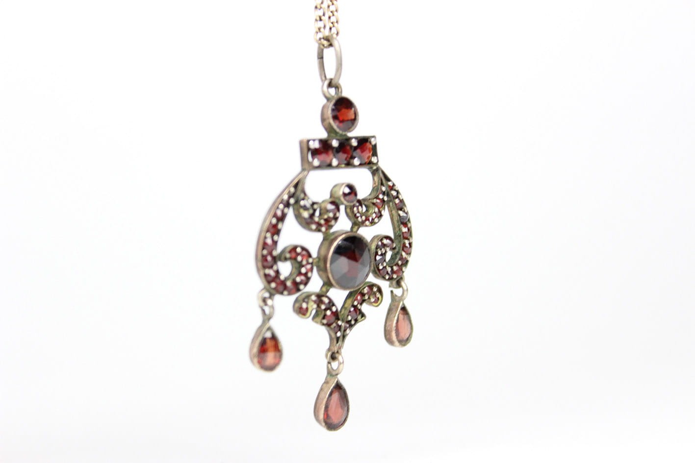 BOGATY WIKTORIAŃSKI WISIOR Z GRANATAMI DOUBLE