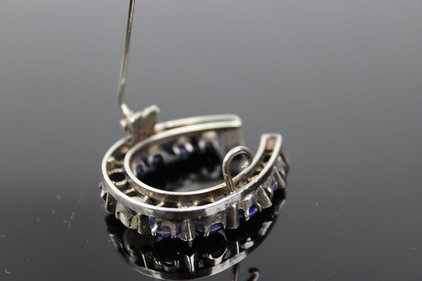 BROSZKA PODKOWA XIX WIEK LAPIS PERŁY SREBRO