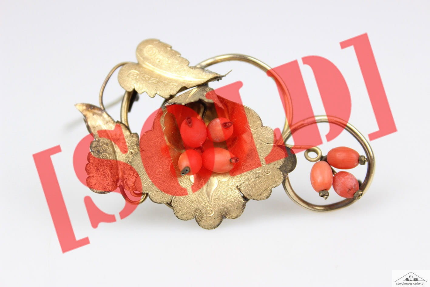 BROSZKA Z KORALEM XIX WIEK ZŁOTO DOUBLE