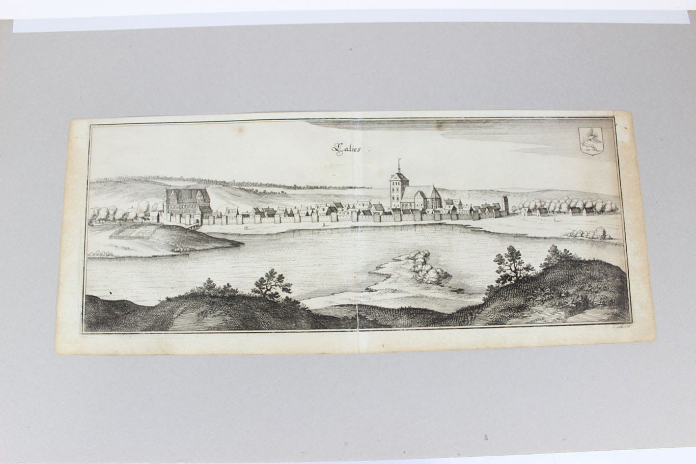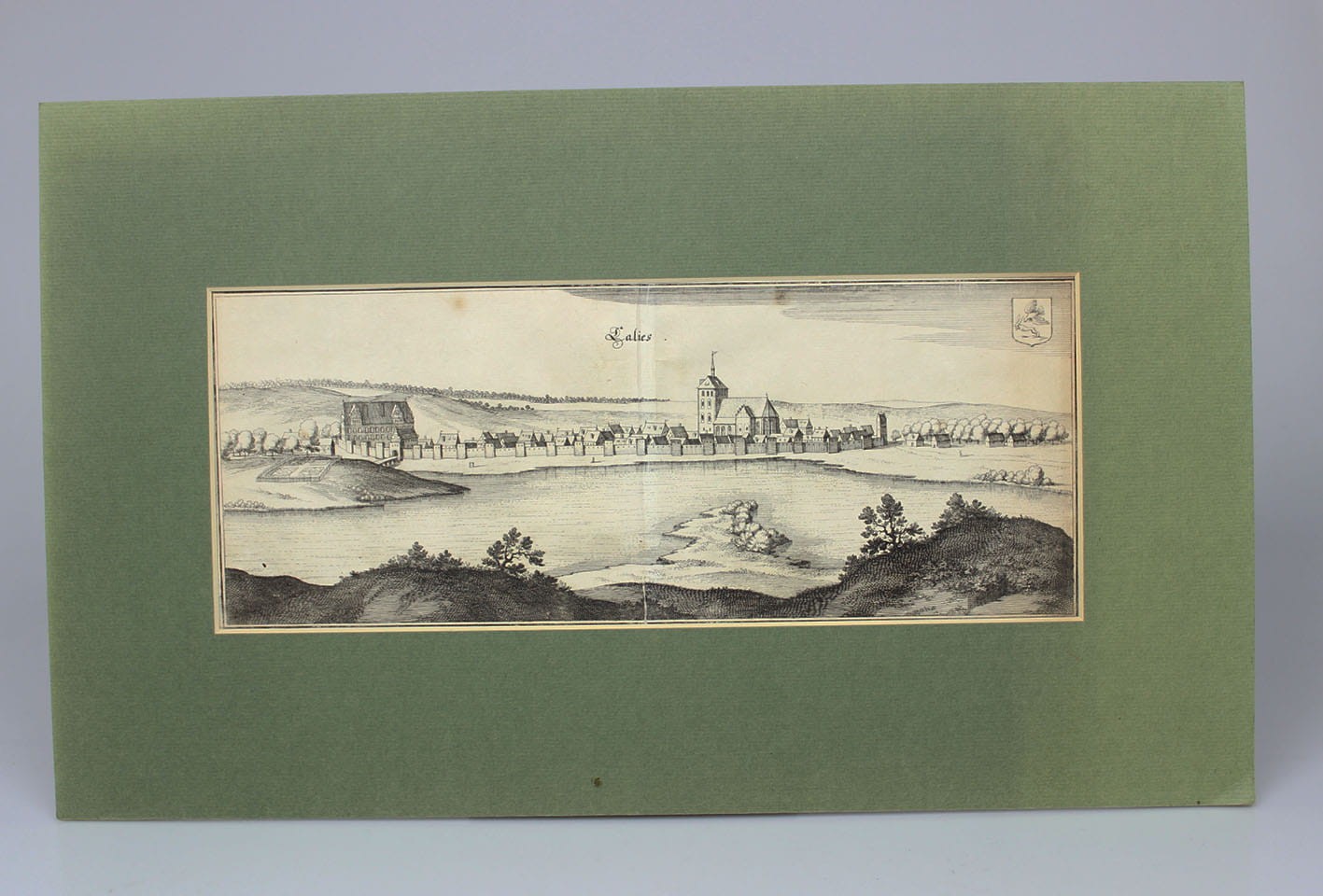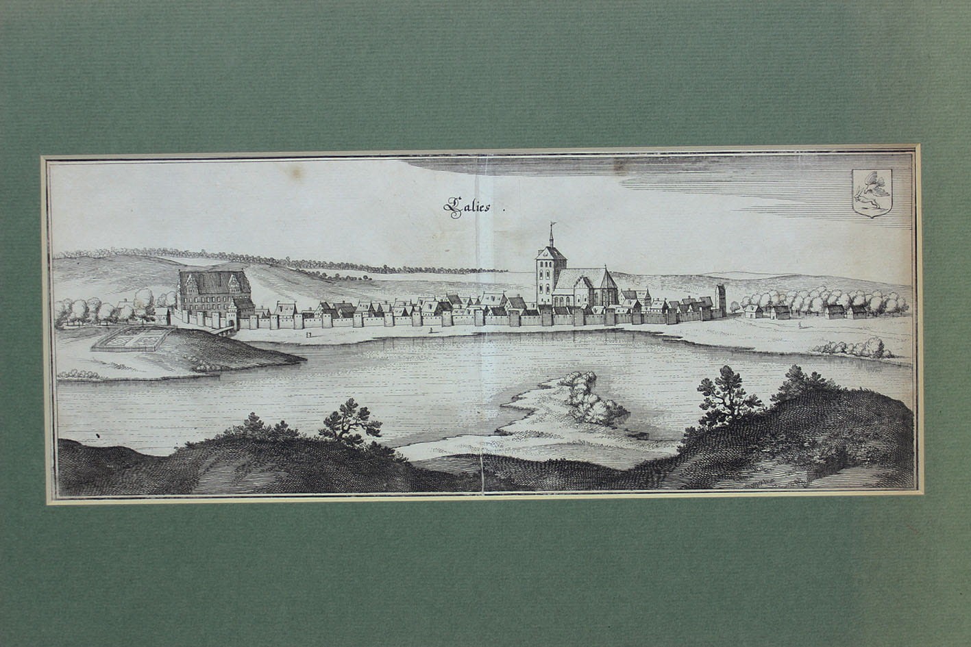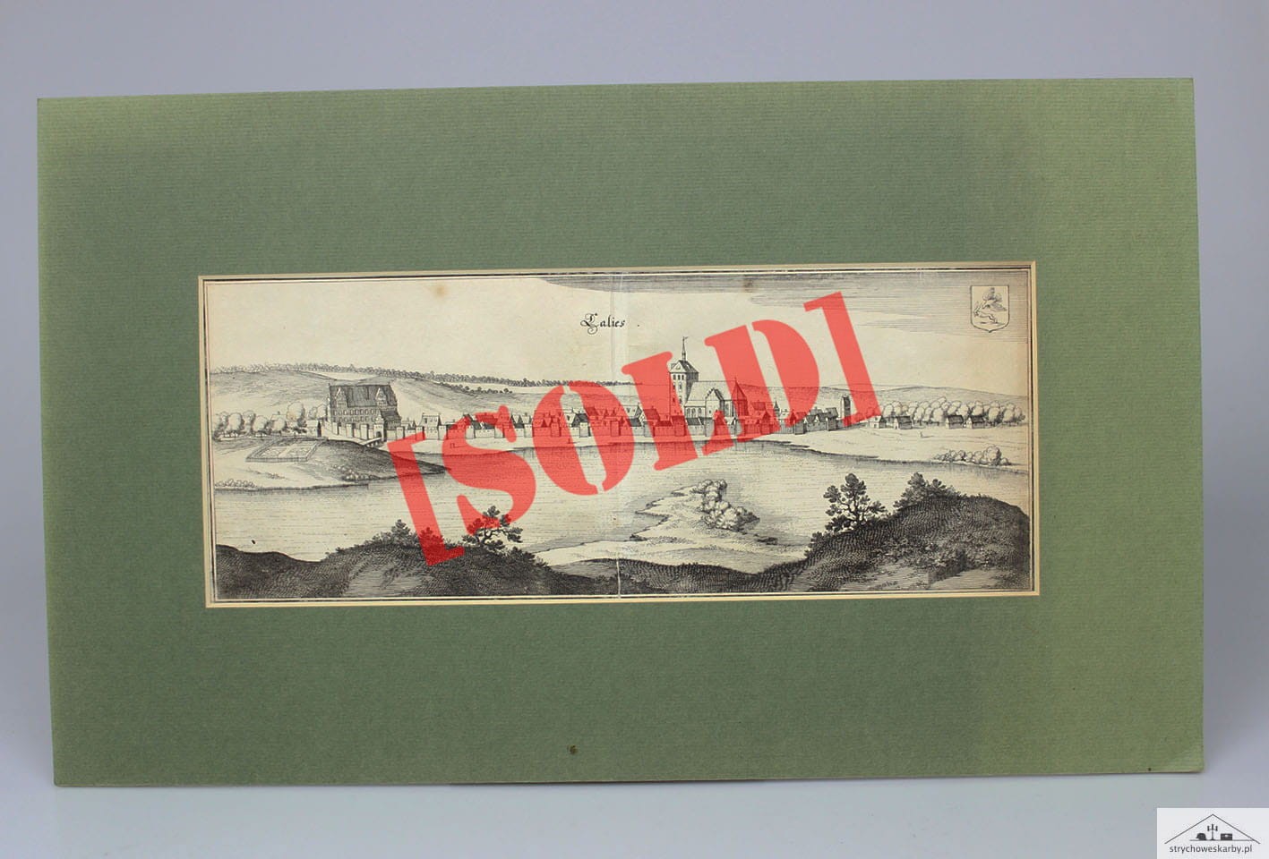 Oryginalny miedzioryt przedstawiający panoramę miasta Kalisz Pomorski (Calies ) pochodzący z:Topographia Electoratus Brandenburgici et Ducatus Pomeraniae M. Zeillera, wydawnictwo spadkobiercy Matthäusa Meriana, Frankfurt n. Menem 1652 rok. Stan zachowania bardzo dobry. Całość w passe partout. Wymiary: