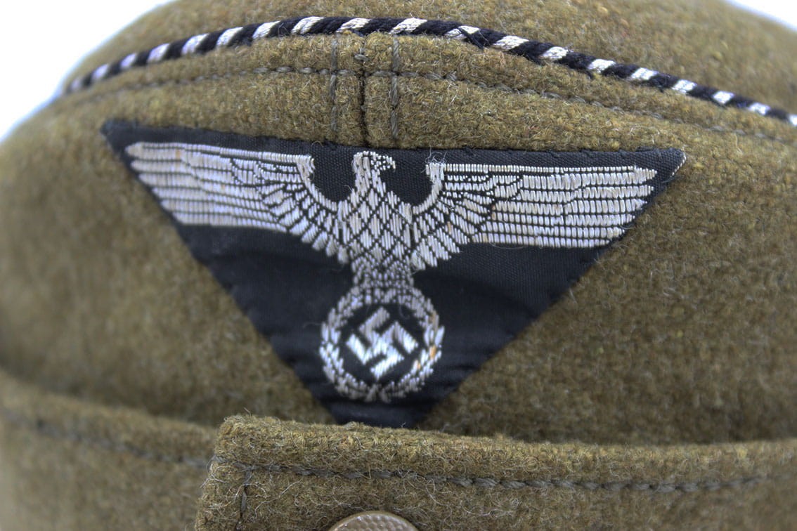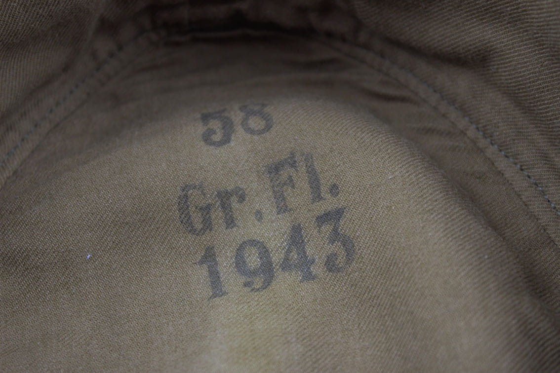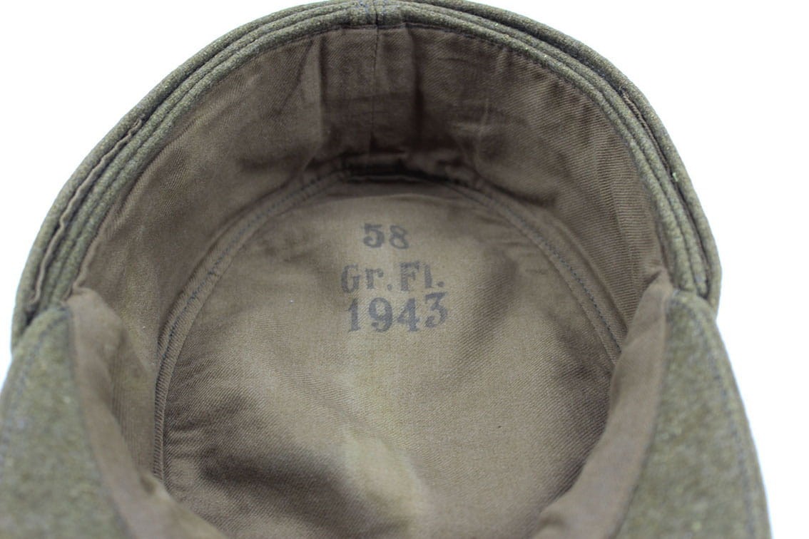 Autentyczna czapka polowa wz. 43 oficera NSKK. Bardzo dobry stan zachowania tylko jeden mały ślad po molu, szwy mocne , bez przetarć. Sygnowana we wnętrzu GR.Fl. 1943 Rozmiar 58.