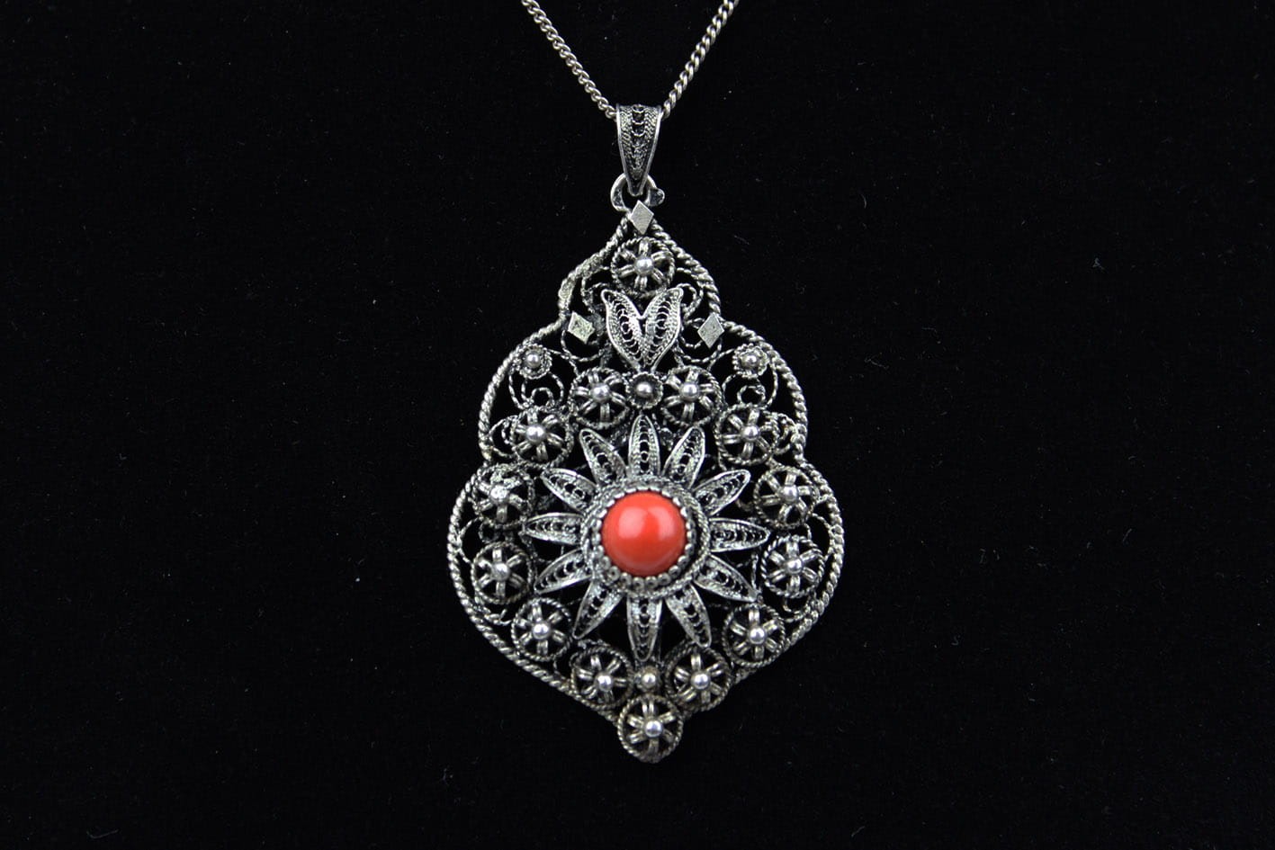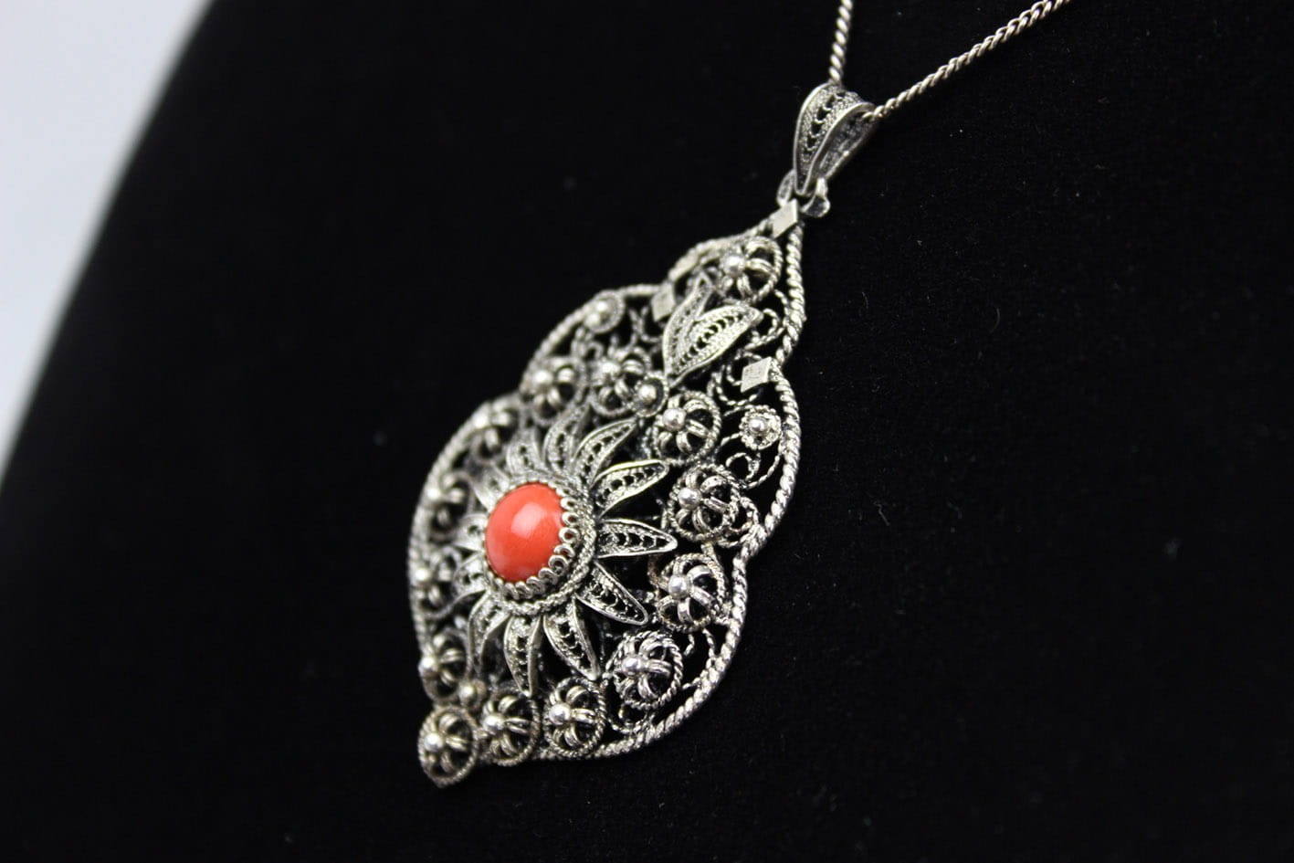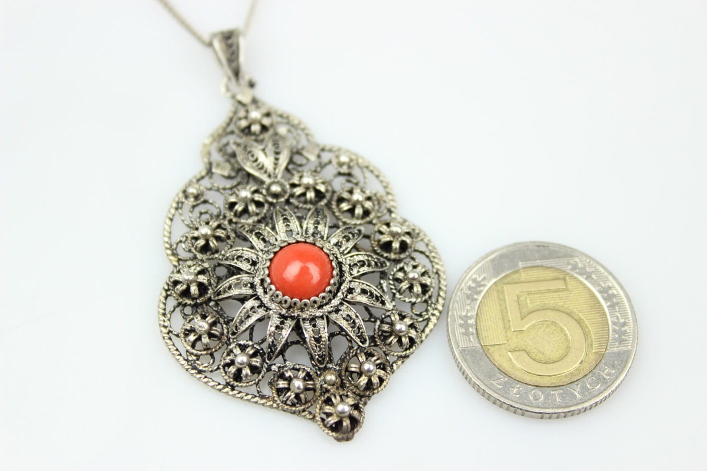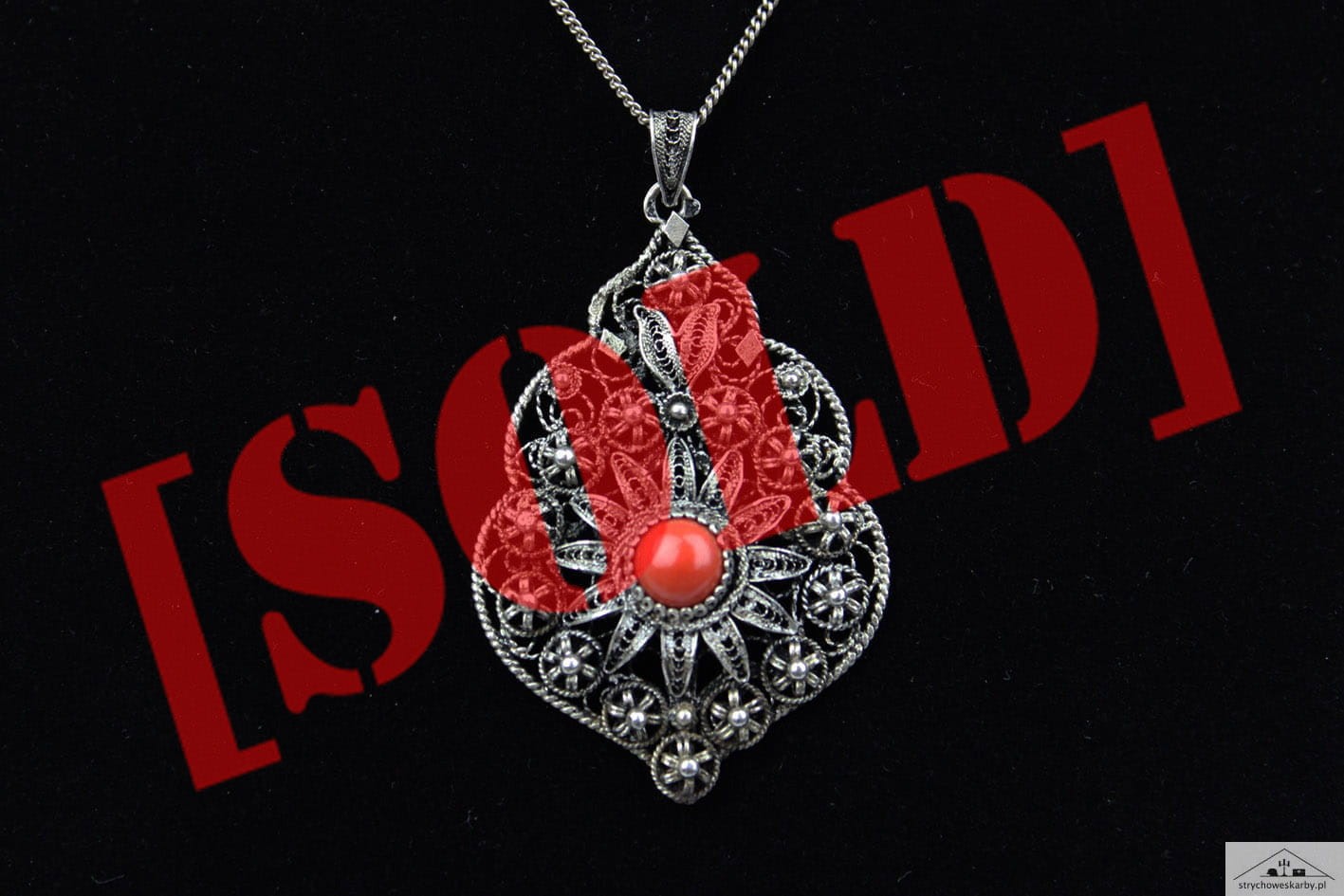 FILIGRANOWA ZAWIESZKA Z KORALEM SZLACHETNYM SREBRO