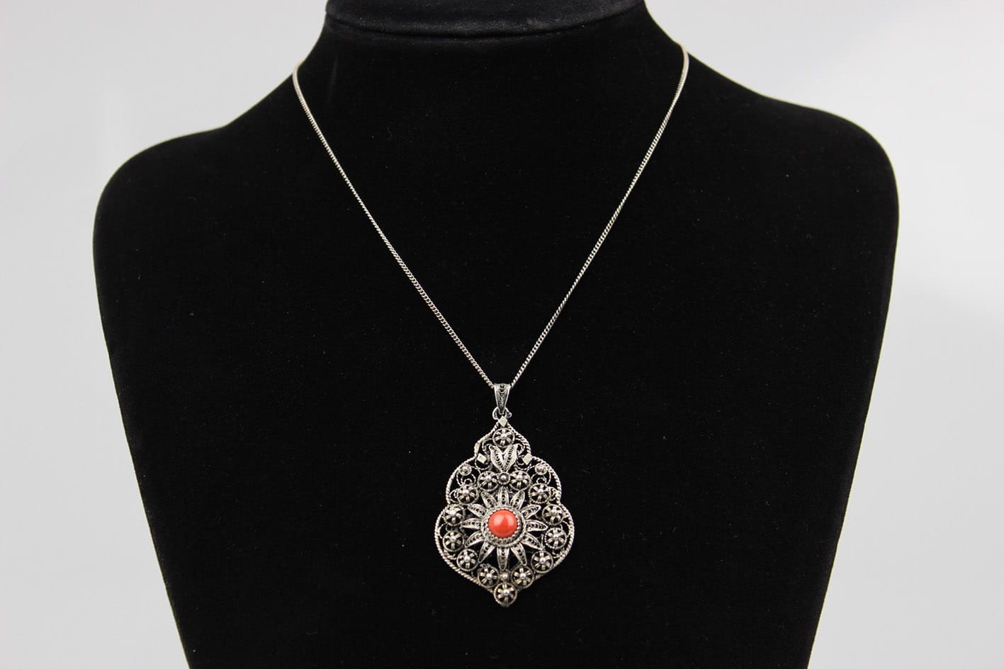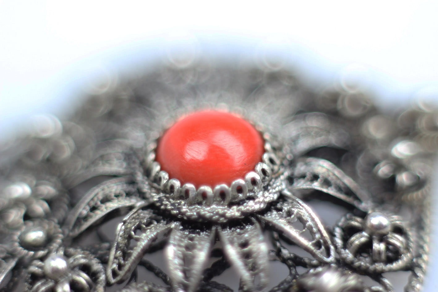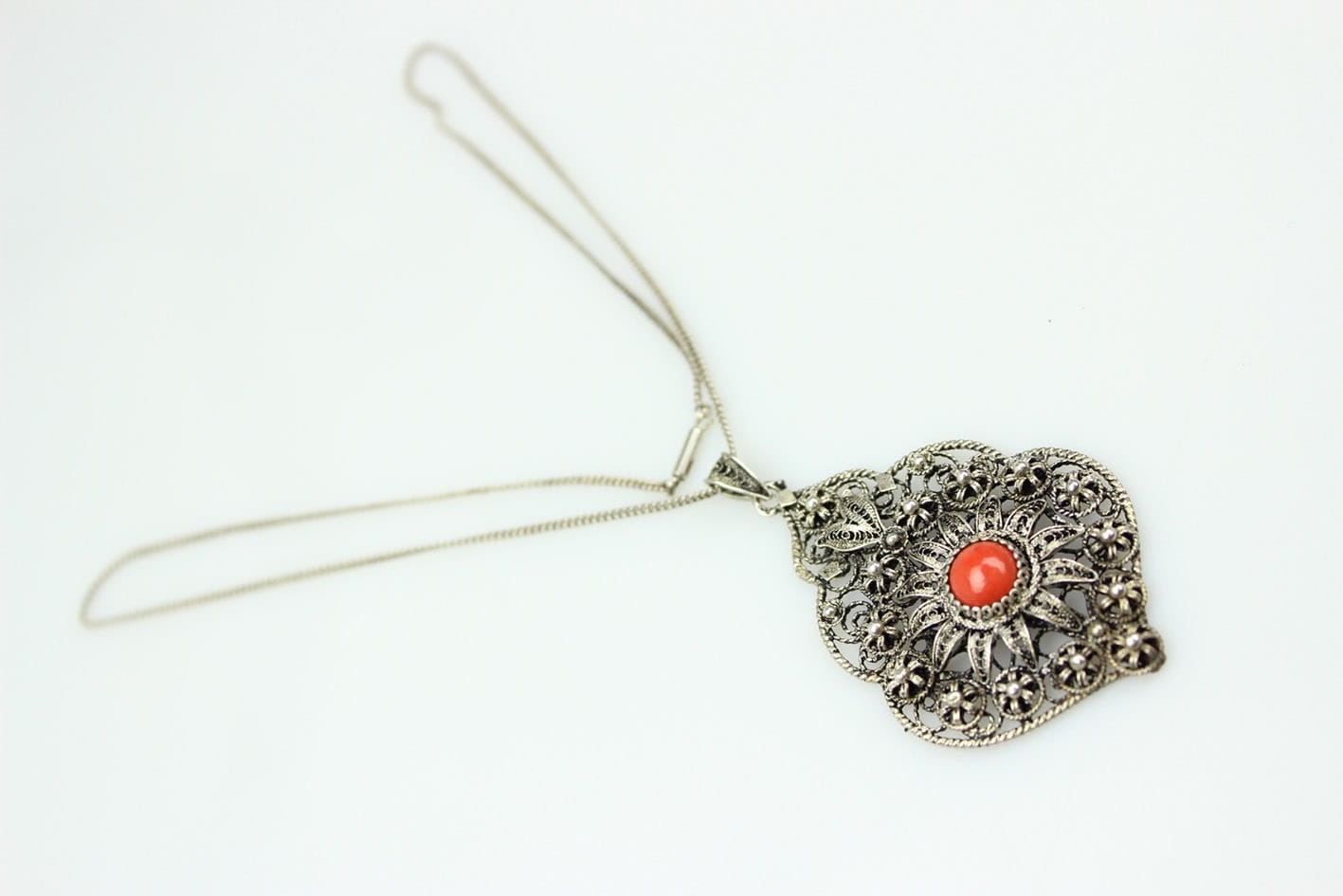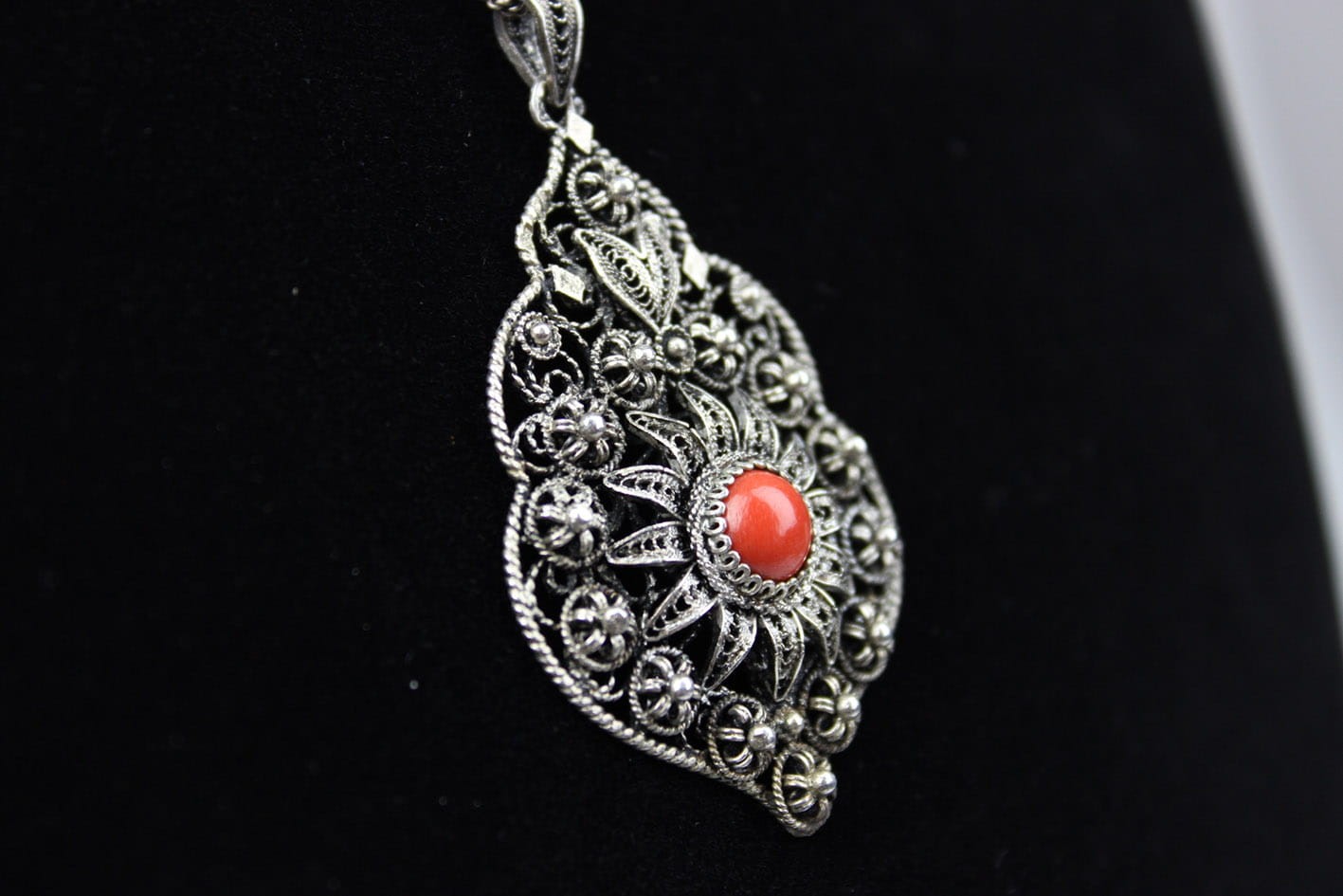 FILIGRANOWA ZAWIESZKA Z KORALEM SZLACHETNYM SREBRO