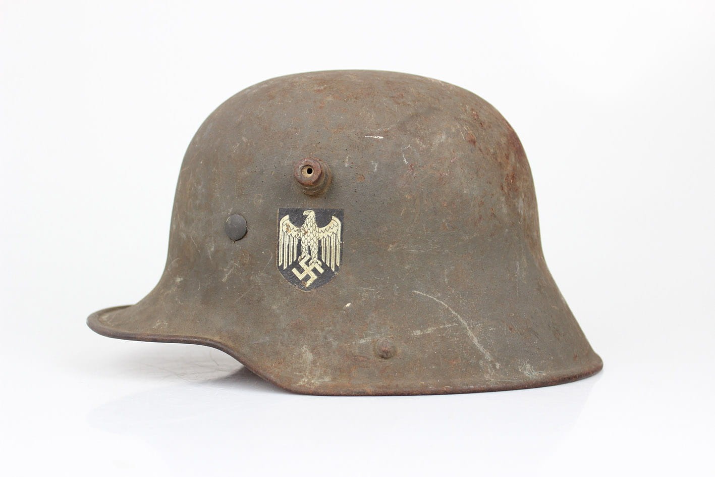 Kiedy Niemcy zaczęli wyposażać siły zbrojne na początku lat 30-tych XX wieku musieli wykorzystywać to, co było dostępne zanim przemysł mógł dostarczyć Wehrmachtowi wystarczającą ilość hełmów. Obejmowały one składy hełmów z I Wojny Światowej , takie modele jak M16,M17, M18. W miarę zbliżającego się wybuchu wojny, hełmy przezbrajano i mocowano w nich fasunki wz.31 , przemalowywano farbą feldgrau ( błyszczącą) i dokładano po dwa dekale. W okresie późniejszym w trakcie działań wojennych wykorzystywano ostatnie magazyny w których znajdowały się hełmy z I wojny światowej i malowano je matową farbą z fakturą i pojedynczą kalkomanią po lewej stronie. Hełmy te wykorzystywano głównie w działaniach tyłowych oraz w służbie garnizonowej ponieważ uznano je za nieużyteczne w trudnych warunkach na froncie.