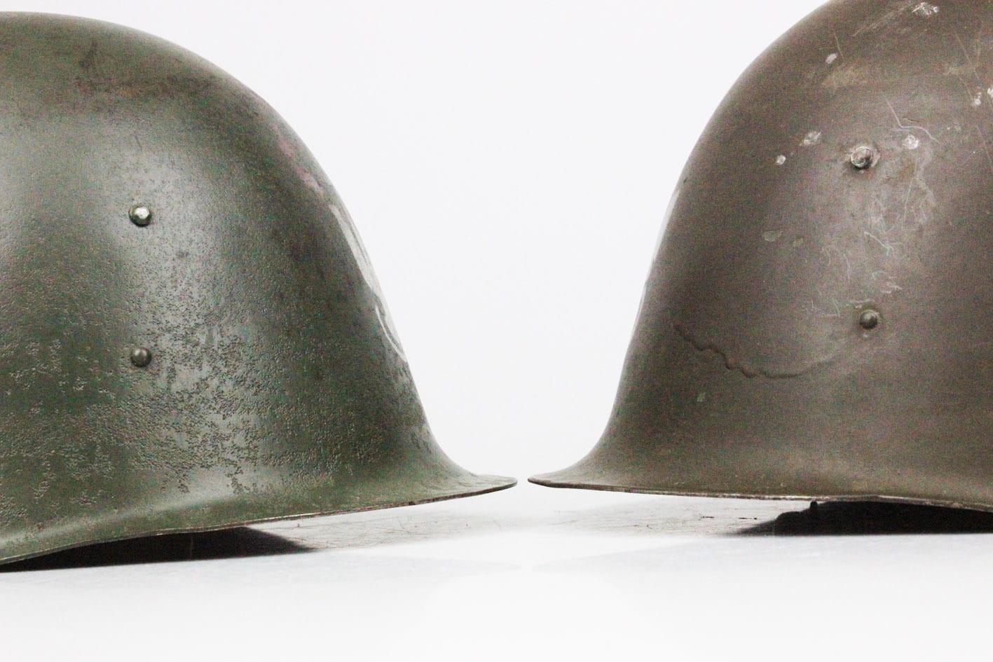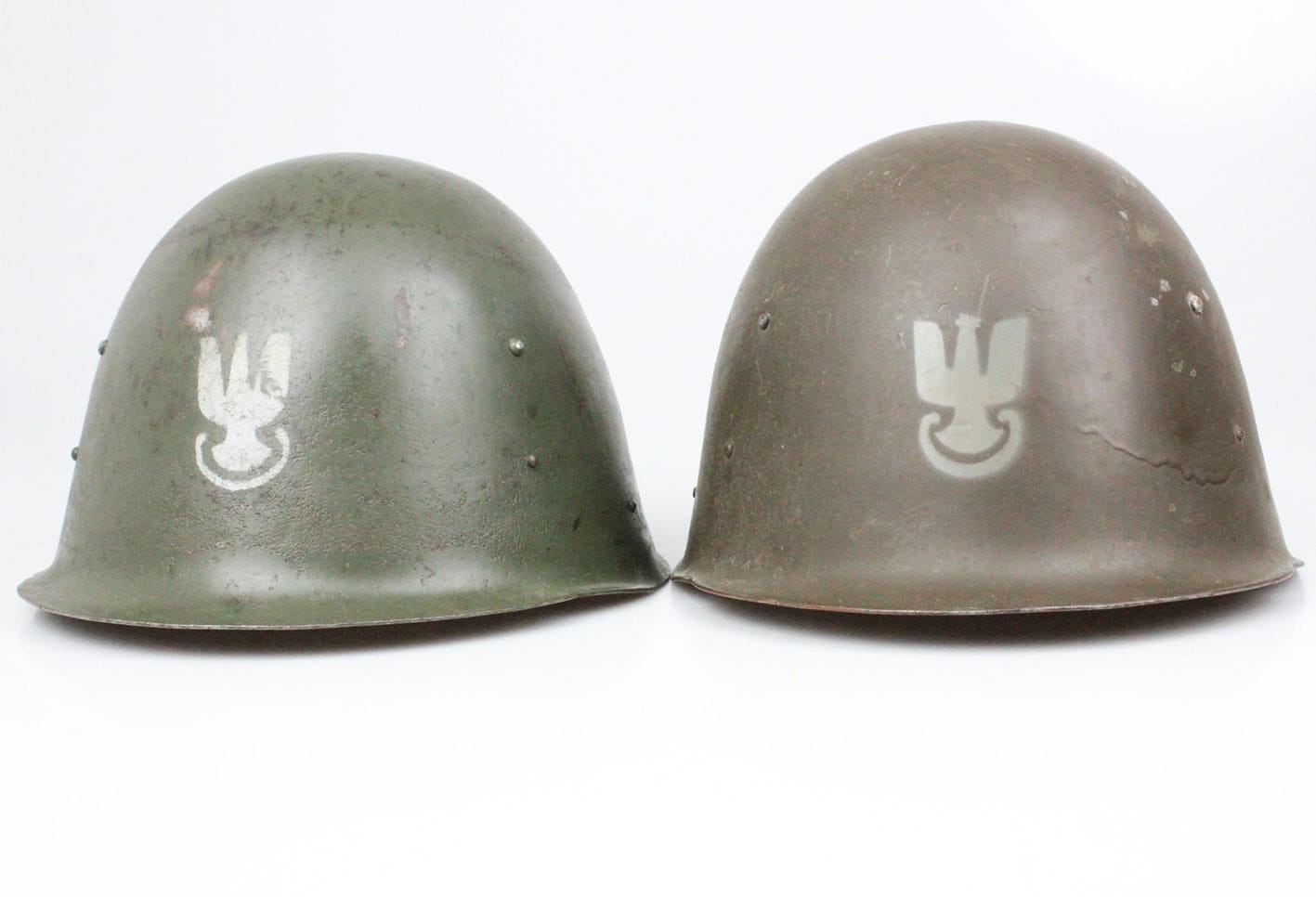 Ostatnie zdjęcia prezentują dwa hełmy wz.31/50 z fasunkami wz.50 jakie są w naszej ofercie, celem porównania koloru farby oraz orzełka w obu egzemplarzach