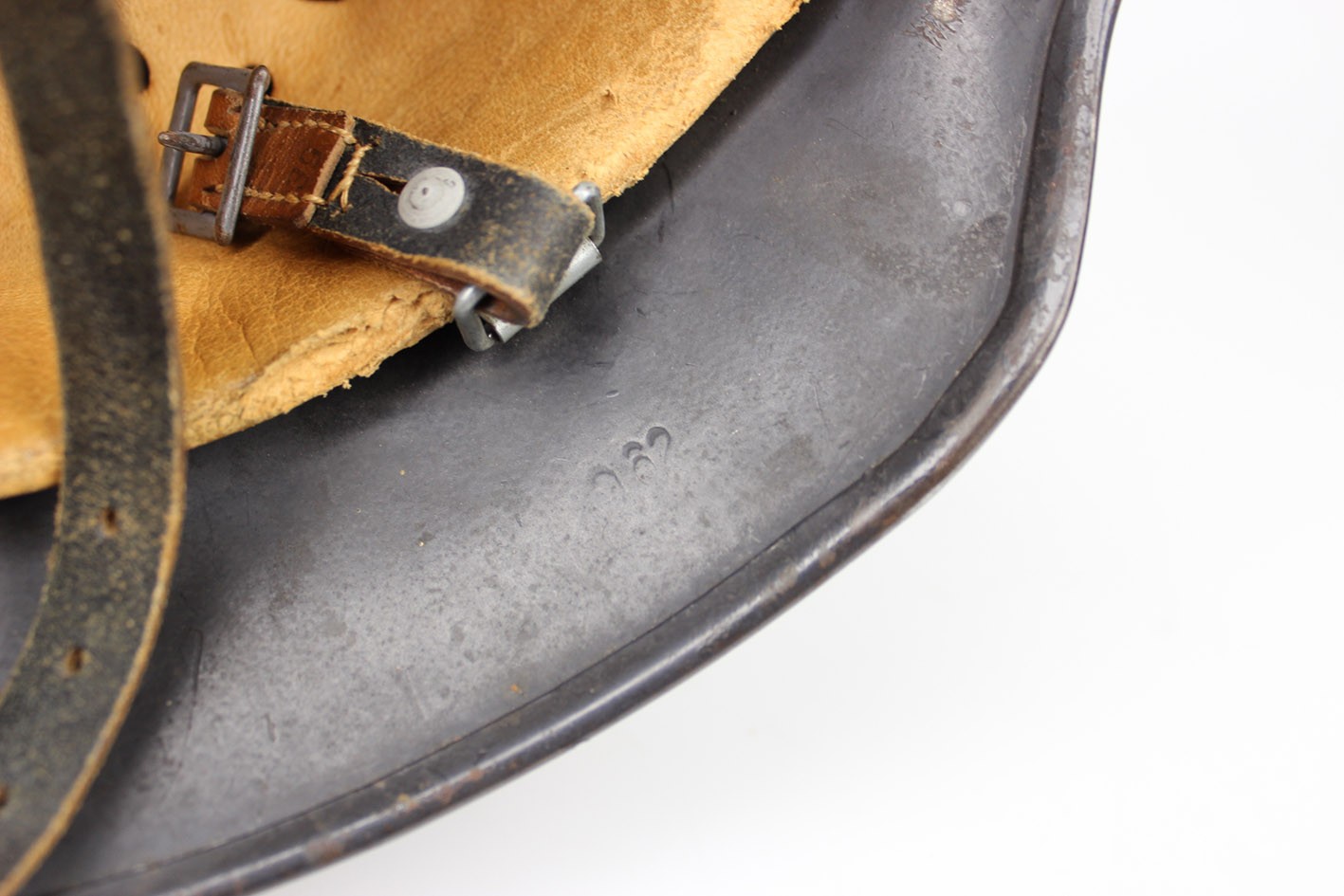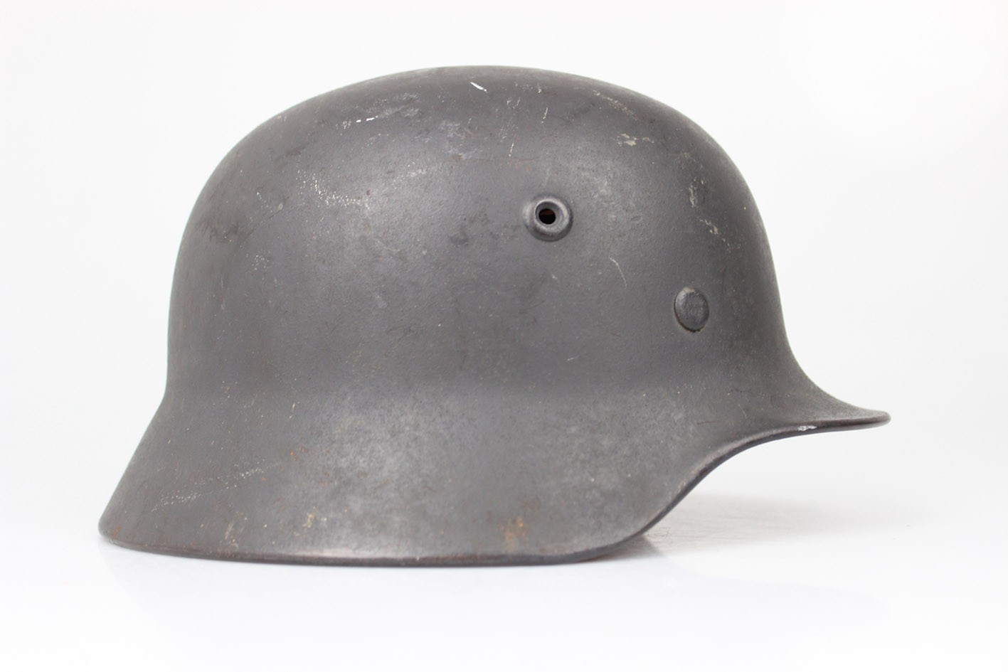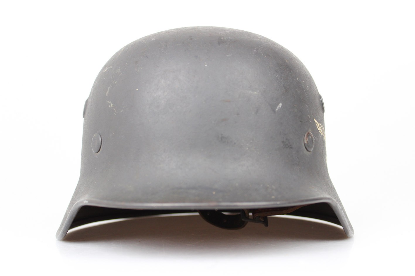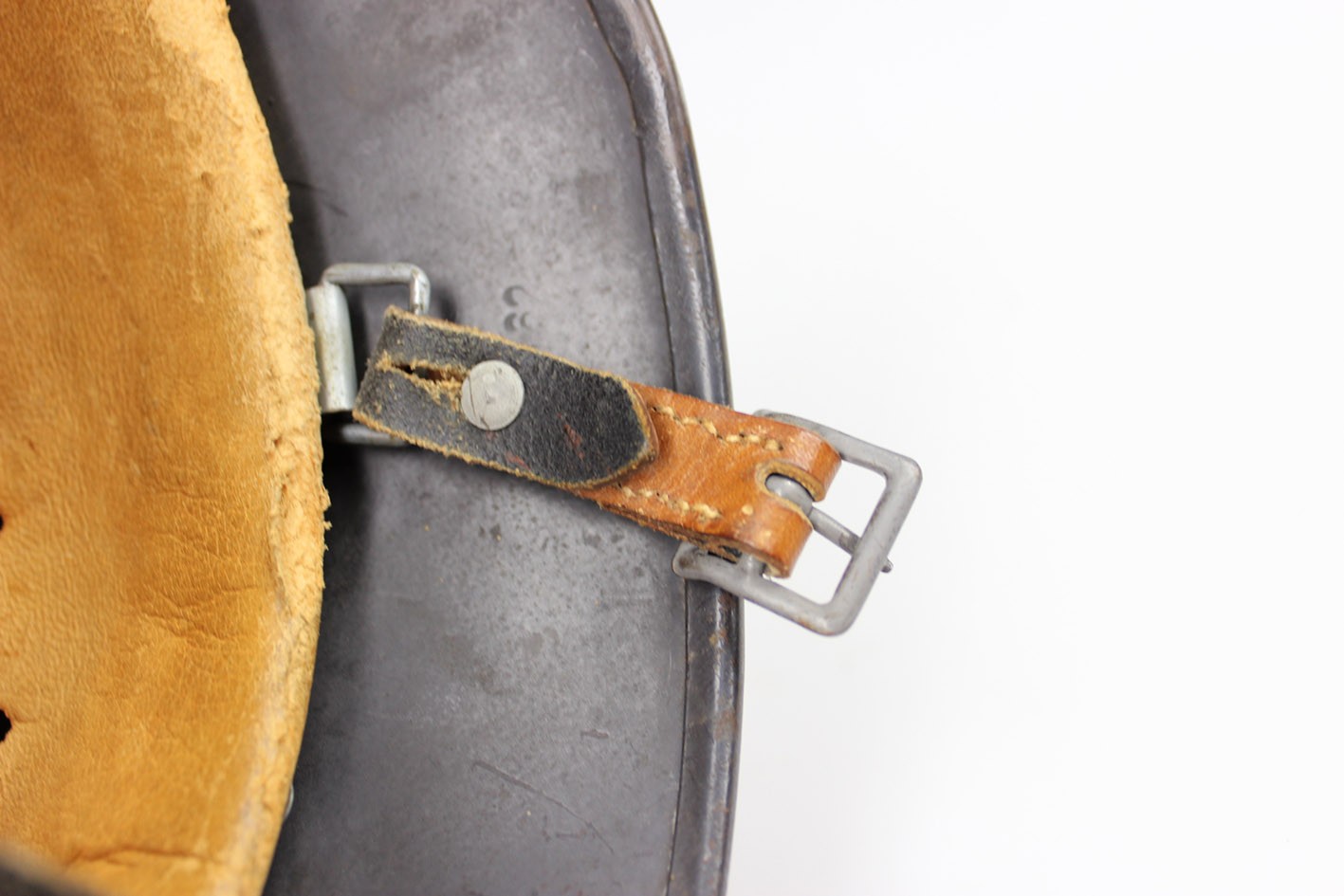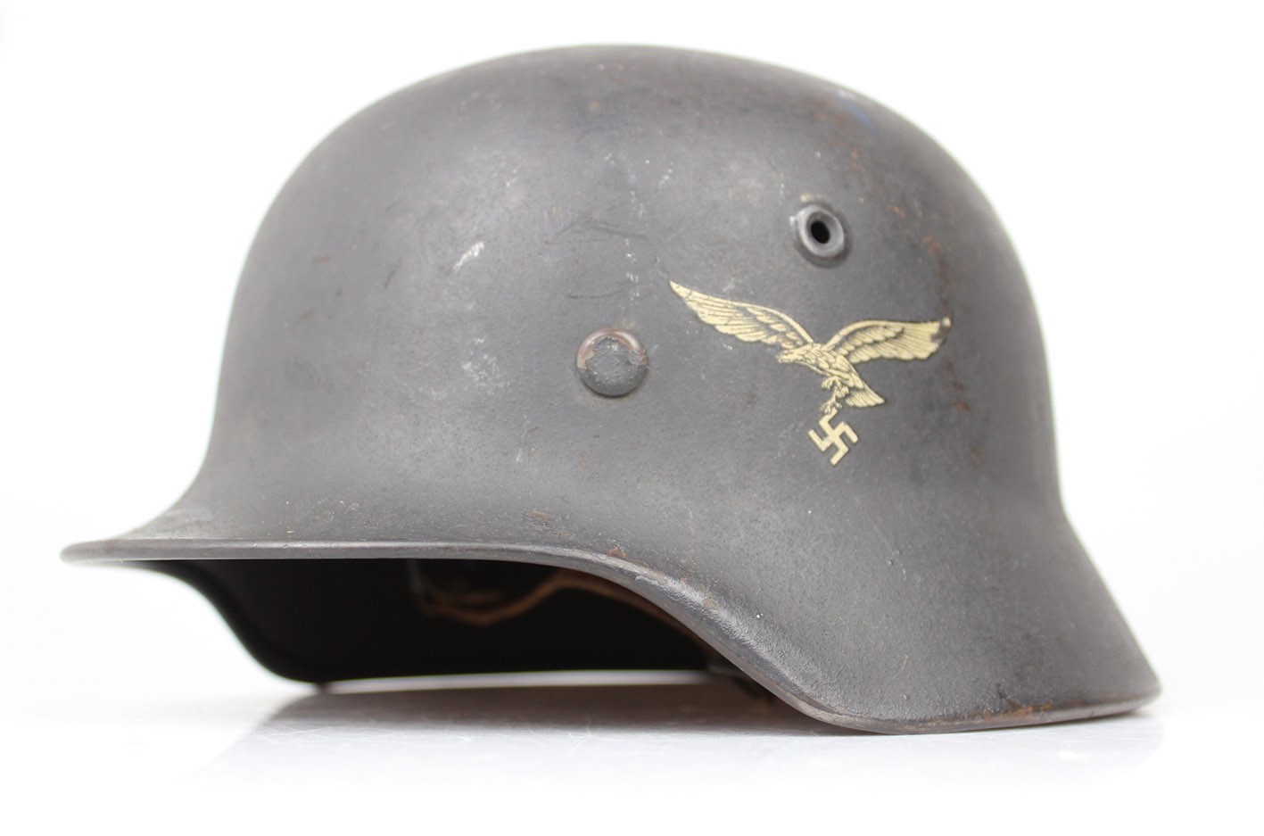 Hełm nie był czyszczony ani odnawiany, posiada autentyczną, nieprzetworzoną patynę. Egzemplarz w pełni zgodny konstrukcyjnie i numeracyjnie z zestawieniami z publikacji Briana Ice’a – partia N172 przypisana do produkcji Quist M40 Luftwaffe Single Decal.