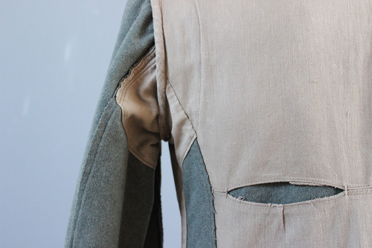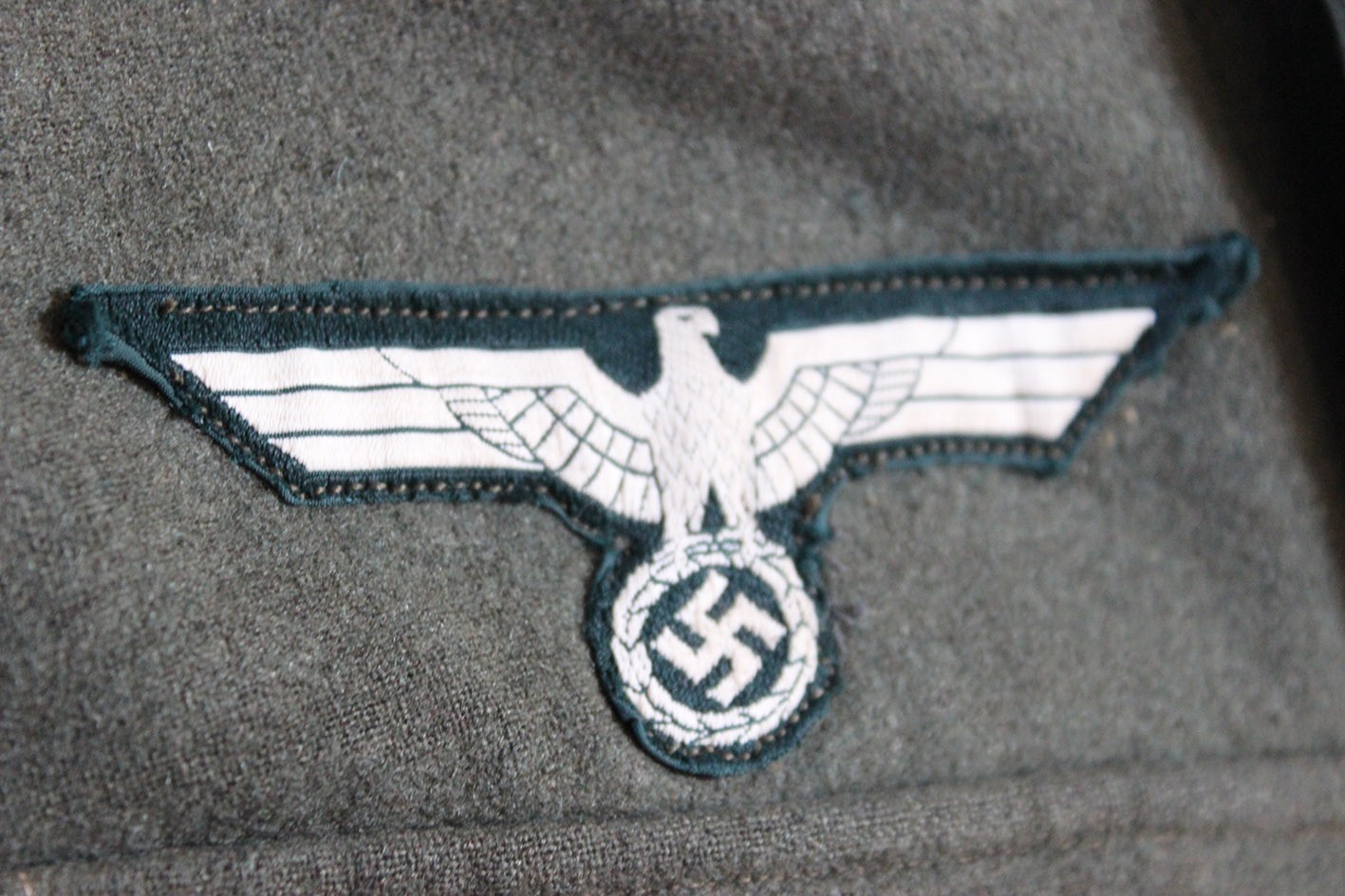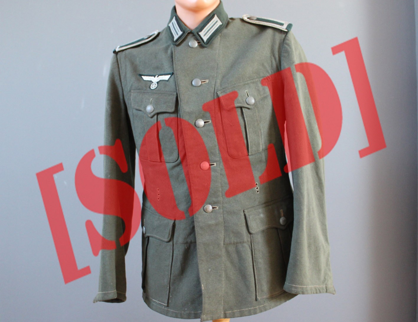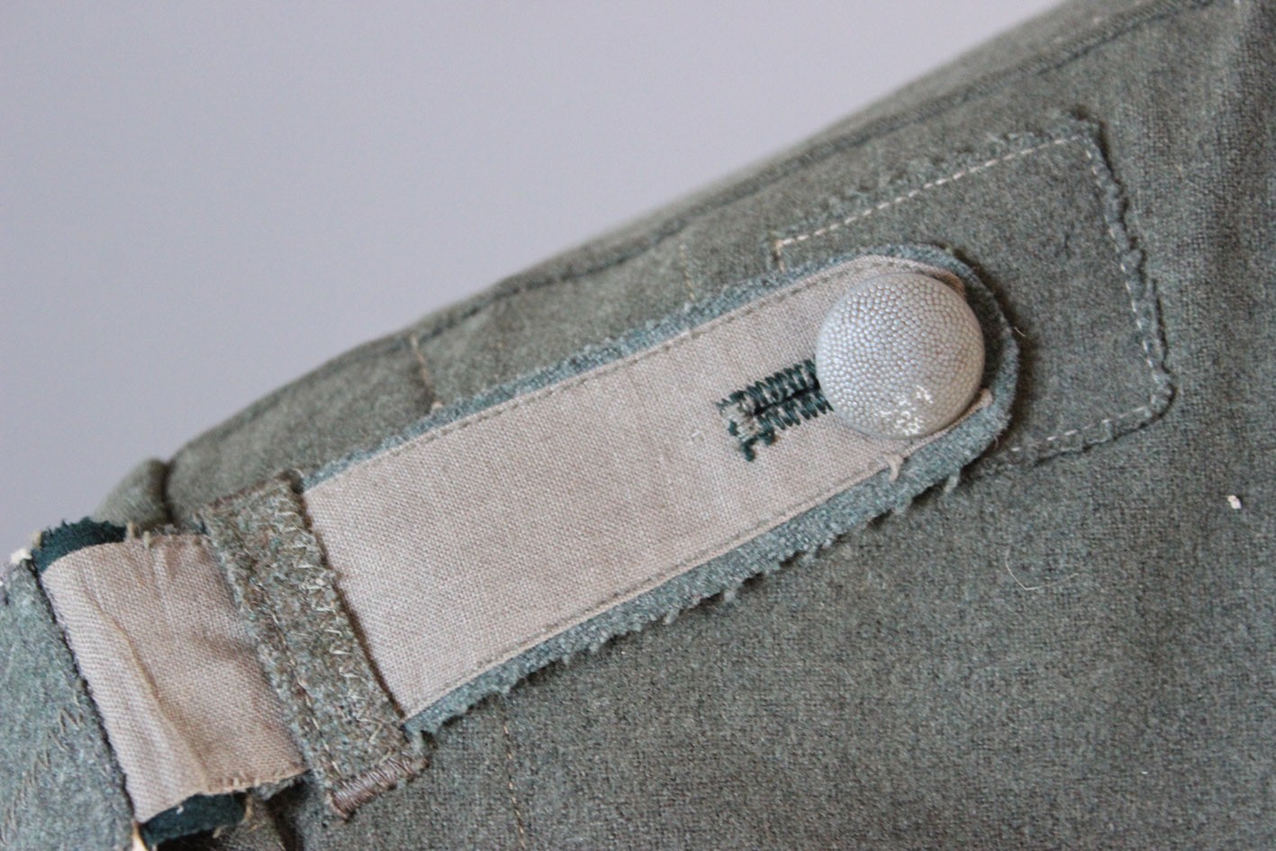 Stan zachowania dokładnie taki, jak widoczny na zdjęciach. Materiał jest mocno sprany, co spowodowało całkowite zatarcie tuszowych pieczątek i bić producenta. Widoczne są liczne ślady długotrwałego użytkowania, miejscowe przetarcia, drobne ubytki sukna oraz naturalne osłabienia tkaniny. W dolnej, tylnej części bluzy zachowane oryginalne, wojenne wstawki naprawcze, wykonane w okresie użytkowania. Nie są to późniejsze ingerencje, lecz autentyczne naprawy frontowe, podnoszące historyczną wiarygodność egzemplarza. Tego typu żołnierskie, liniowe bluzy spotykane są dziś znacznie rzadziej niż egzemplarze oficerskie, które w dużej części przetrwały w stanie magazynowym. Jest to uczciwy, frontowy przykład umundurowania podoficera piechoty.