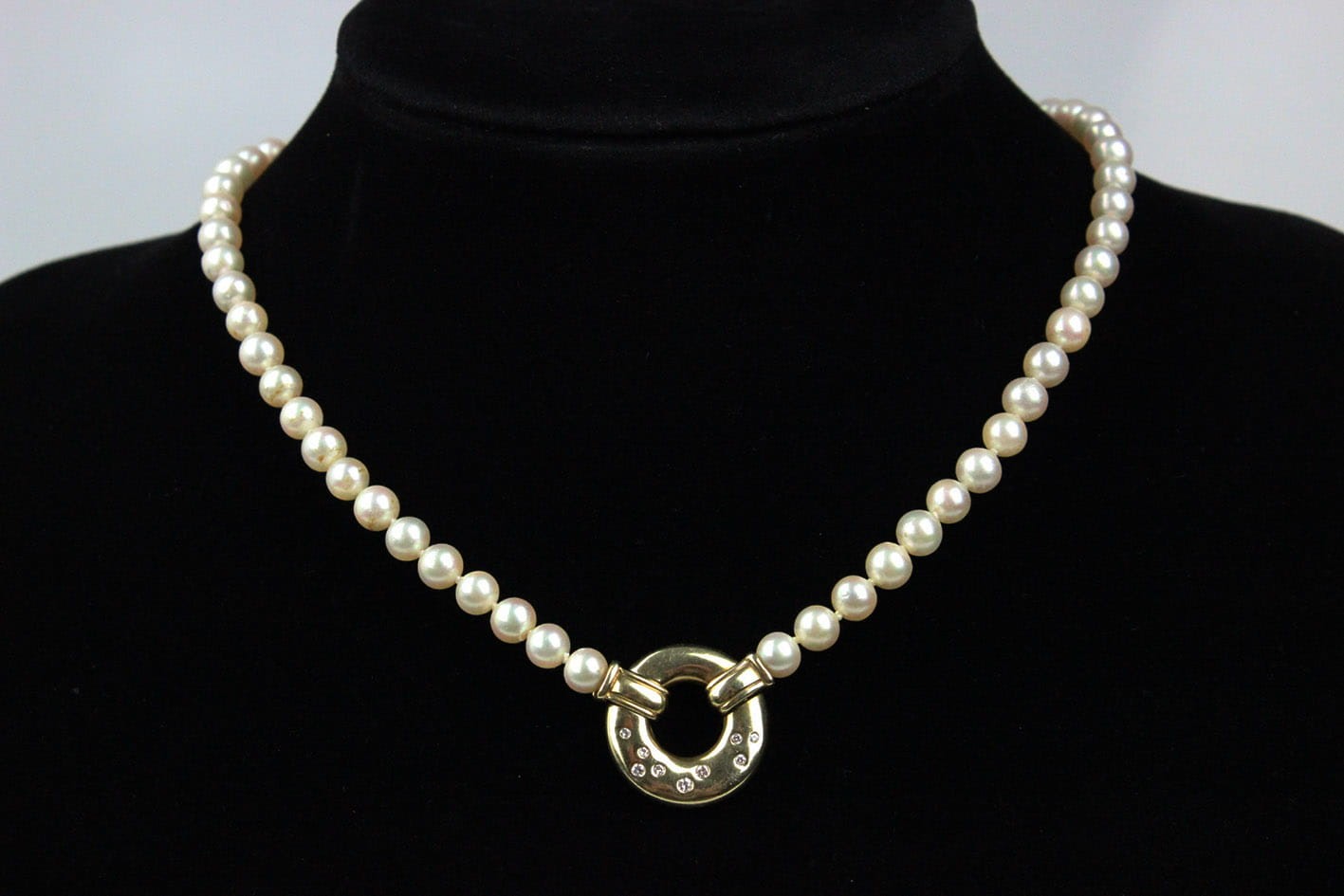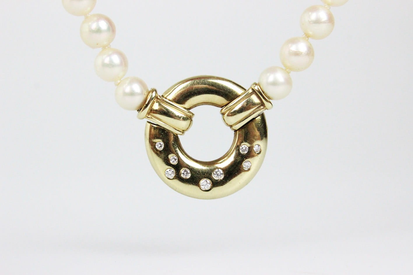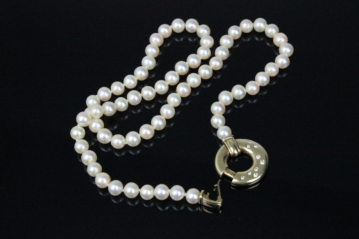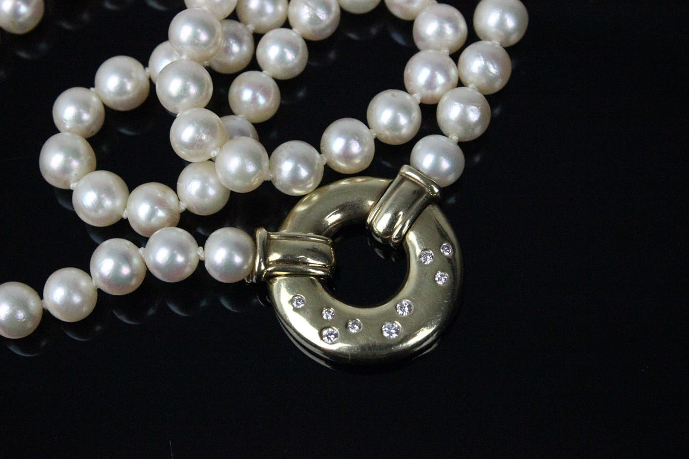 NASZYJNIK PERŁY ZE ZŁOTYM ZAPIĘCIEM Z BRYLANTAMI