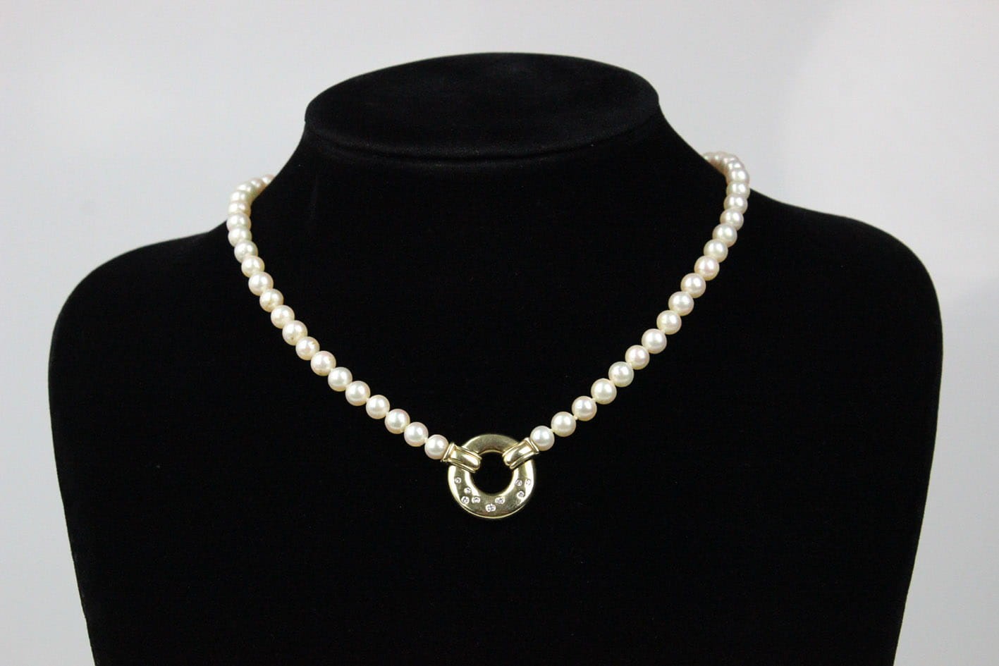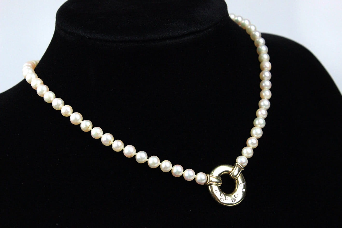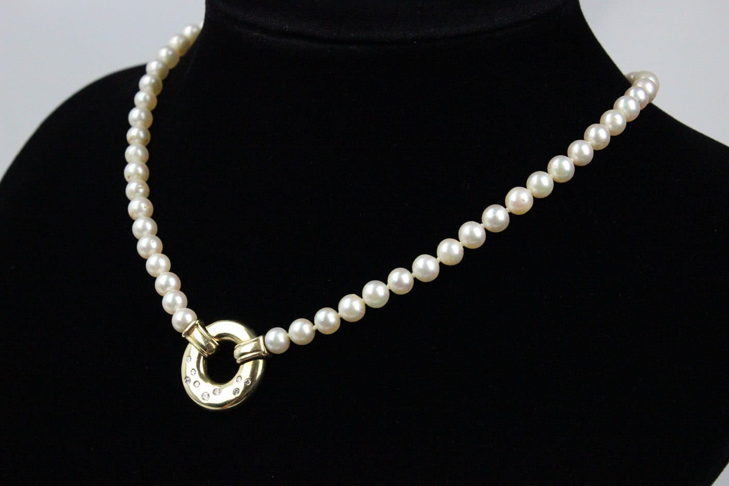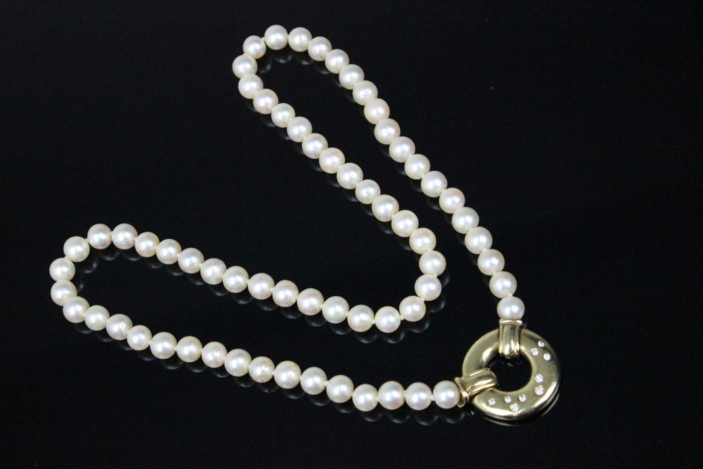 NASZYJNIK PERŁY ZE ZŁOTYM ZAPIĘCIEM Z BRYLANTAMI