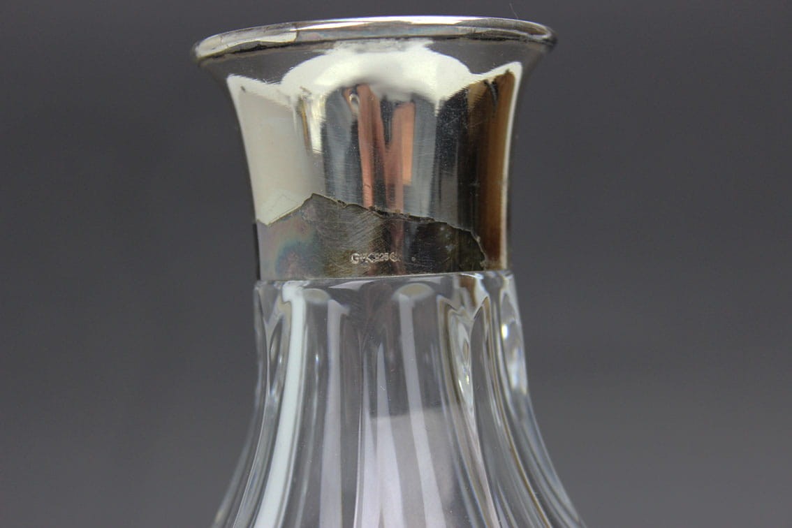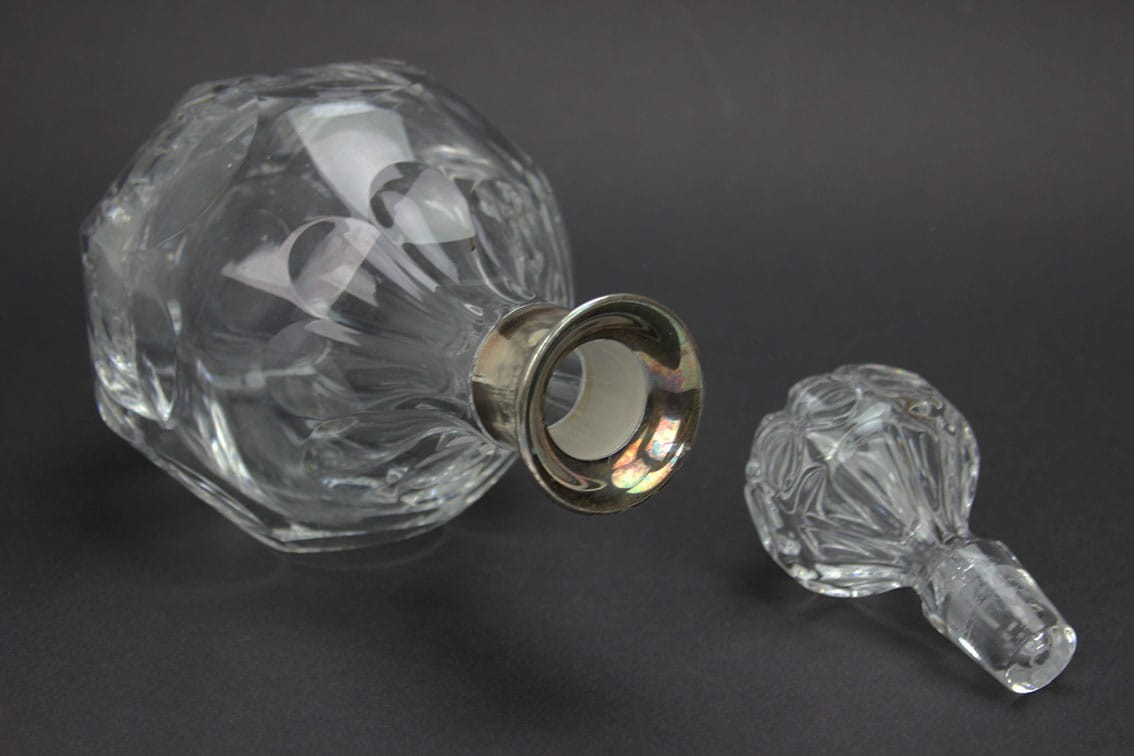 OKAZAŁA KRYSZTAŁOWA KARAFKA SREBRO