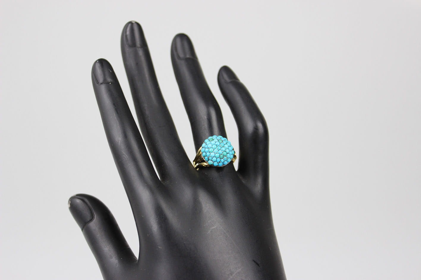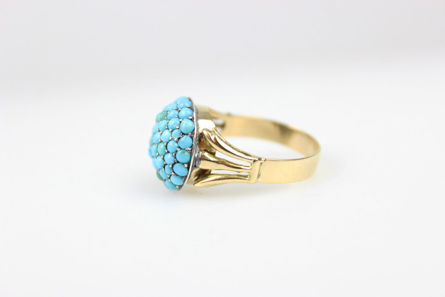 PIERŚCIONEK KOPUŁKA Z TURKUSAMI ZŁOTO 18K