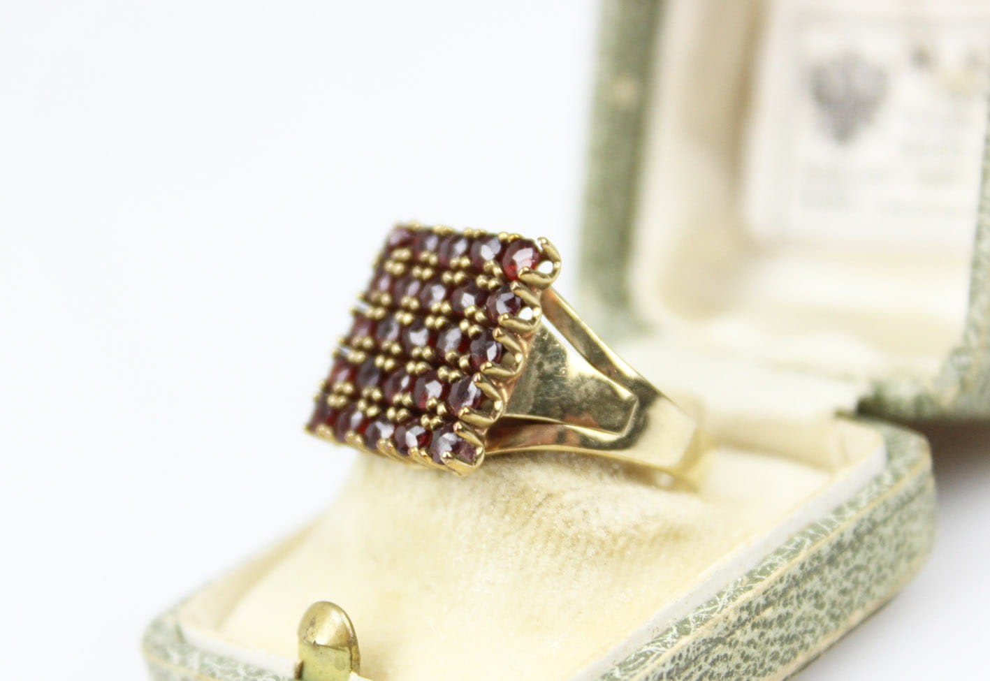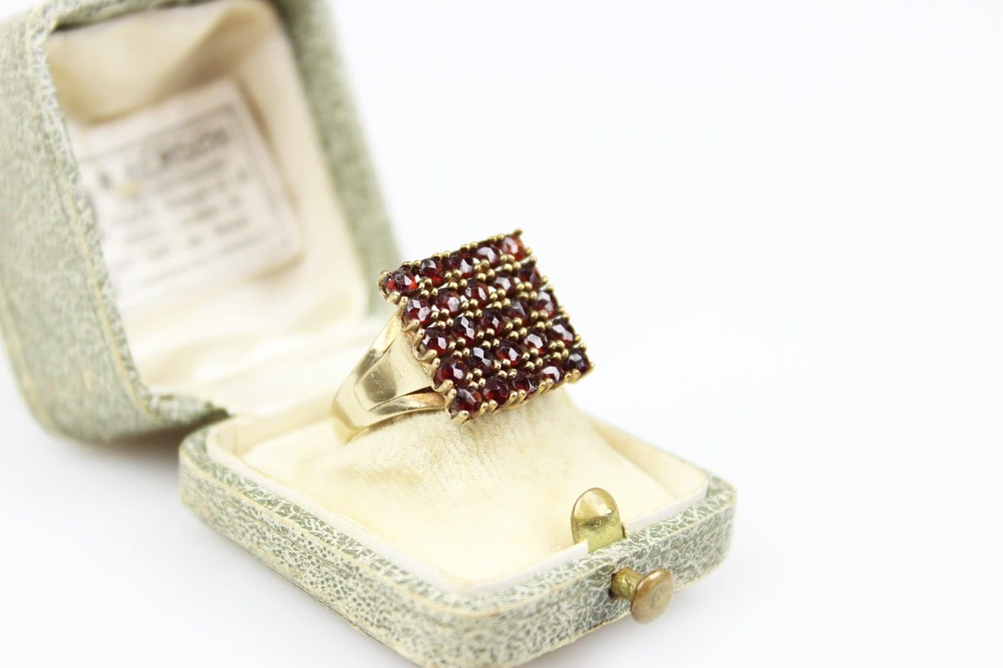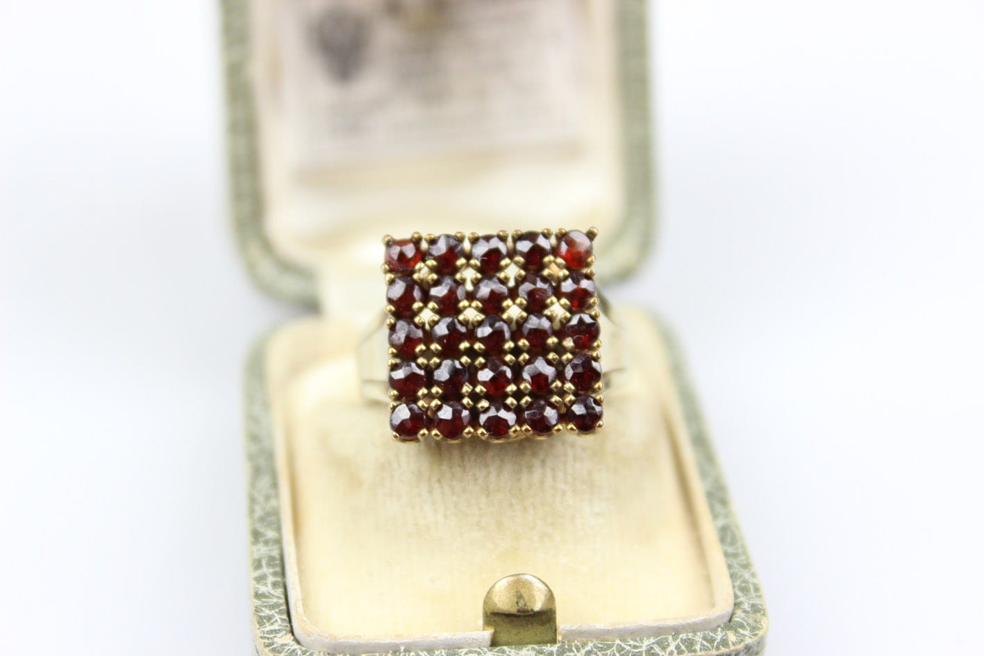 PRZEDWOJENNY PIERŚCIONEK GRANATY ZŁOTO