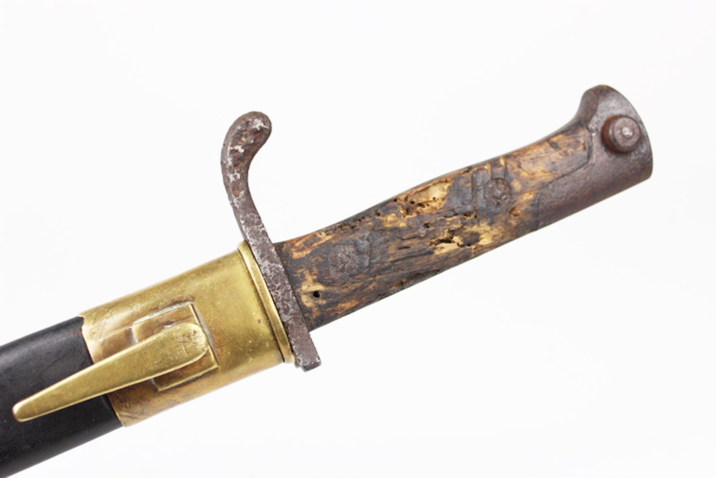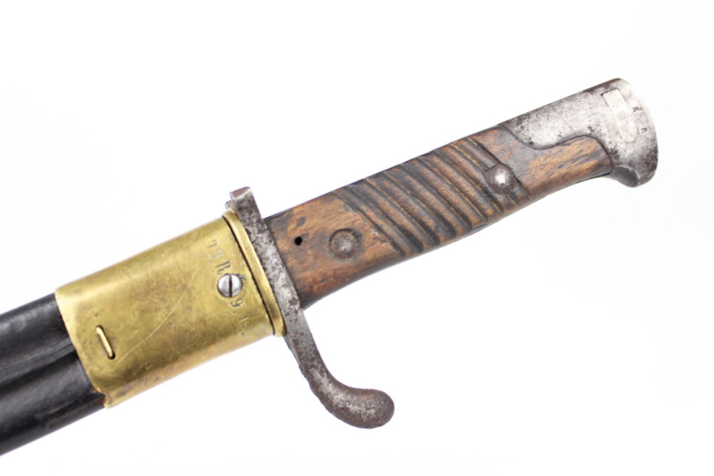 Pochwa oryginalnie była bawarską pochwą bagnetu, z korpusem skórzanym, mosiężnymi okuciami oraz szlufką na pasek. Ze względu na długotrwałe przechowywanie w niesprzyjających warunkach, skóra oraz dolne okucie pochwy zostały zrekonstruowane. Górne okucie pochodzi od standardowego bagnetu Infanterie Seitengewehr M.71. Stan zachowania określić należy jako typowy dla autentycznego „strychowca” o udokumentowanej historii użytkowej i magazynowej.