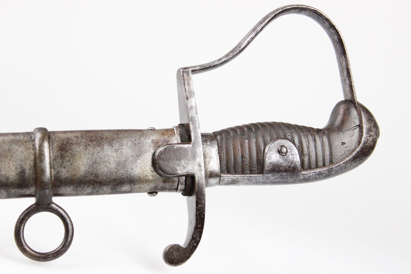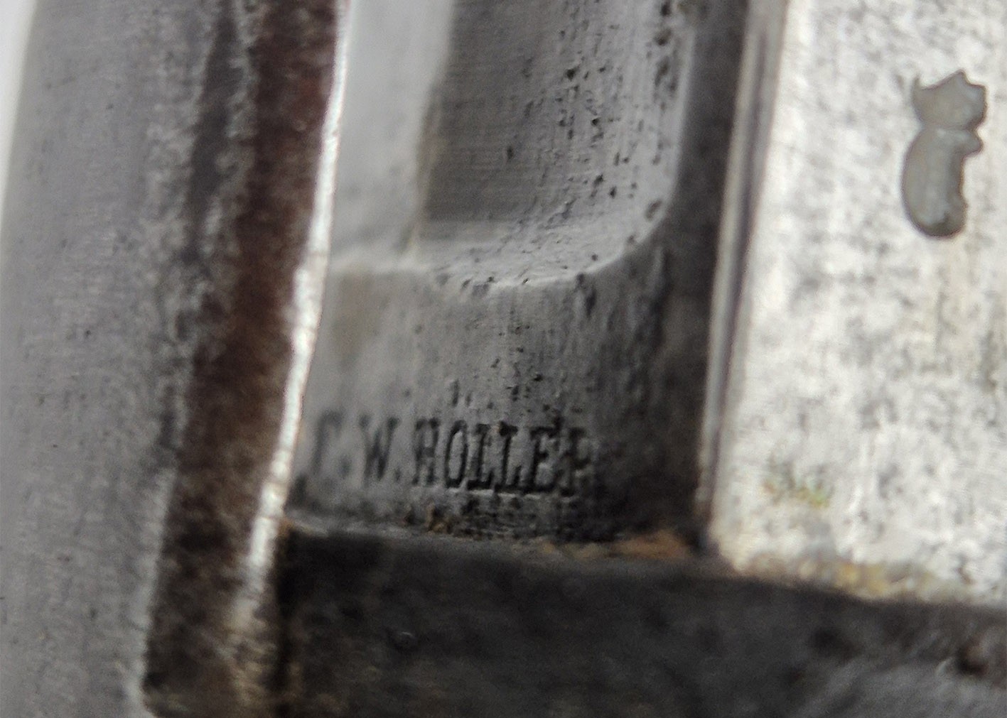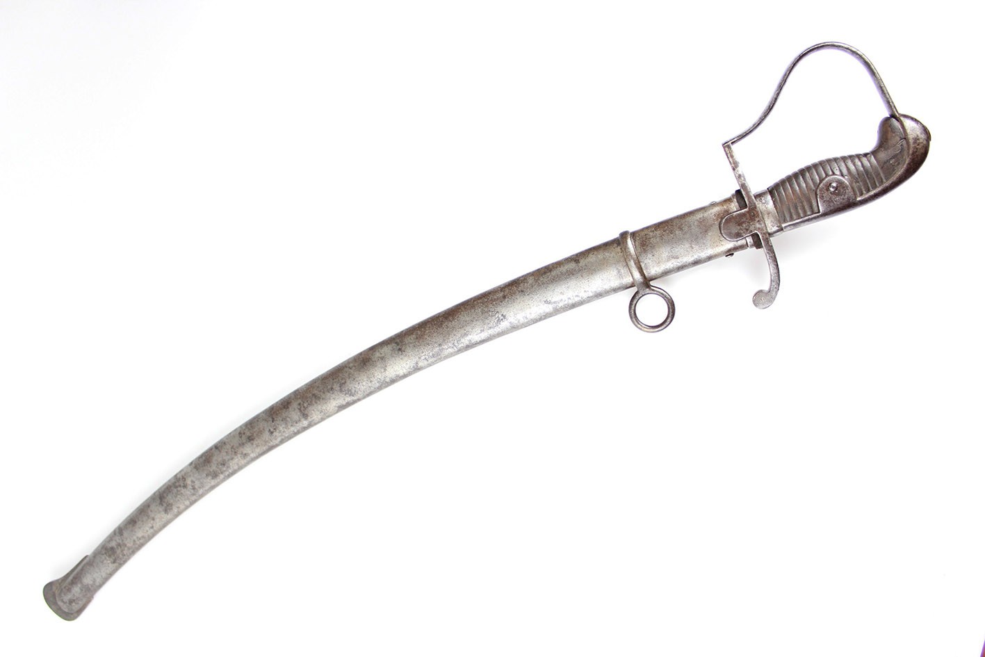 Pruska szabla artyleryjska neuer Art przyjęta na stan armii w 1916 roku. Głownia obustronnie szlifowana w jedną przygrzbietową bruzdę. Na progu nasady pod wąsem wybita marka firmy F.W. HOLLER. Na grzbiecie nasady wybite W pod koroną ( Wilhelm II), cyfra 16, oraz cecha kontroli technicznej. Rękojeść stalowa jednokabłąkowa. Uchwyt z ciemnobrązowego drewna. Pochwa z blachy stalowej z nieruchomym kółkiem nośnym i prostokątną antybabką. Szyjka pochwy zakończona kołnierzem i zabezpieczona po obu stronach wkrętami. Na szyjce pochwy wybite przekreślone oznaczenie pułkowe F.A.R.55. ( 55 Pułk Artylerii Polowej- 2 Turyngski) z drugiej strony R.A.R. 51 Pochwa i rękojeść w strychowym stanie zachowania z delikatną kaszką. Głownia pięknie zachowana, prosta. Jedynym mankamentem jest delikatne pęknięcie uchwytu widoczne na zdjęciach. Dokładnie to co na fotografiach.
