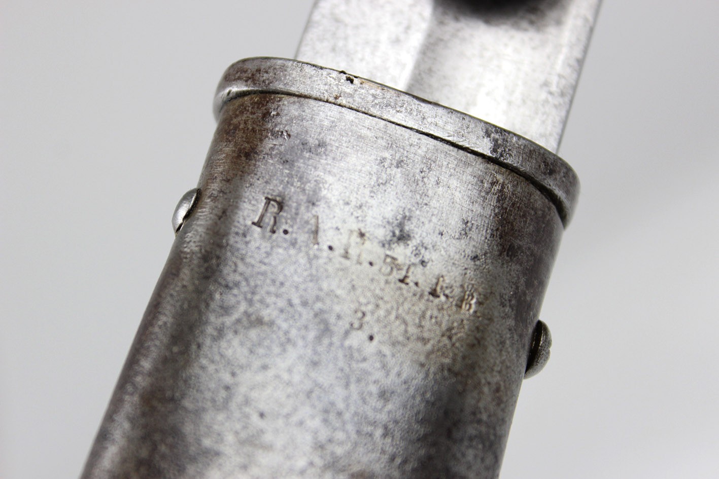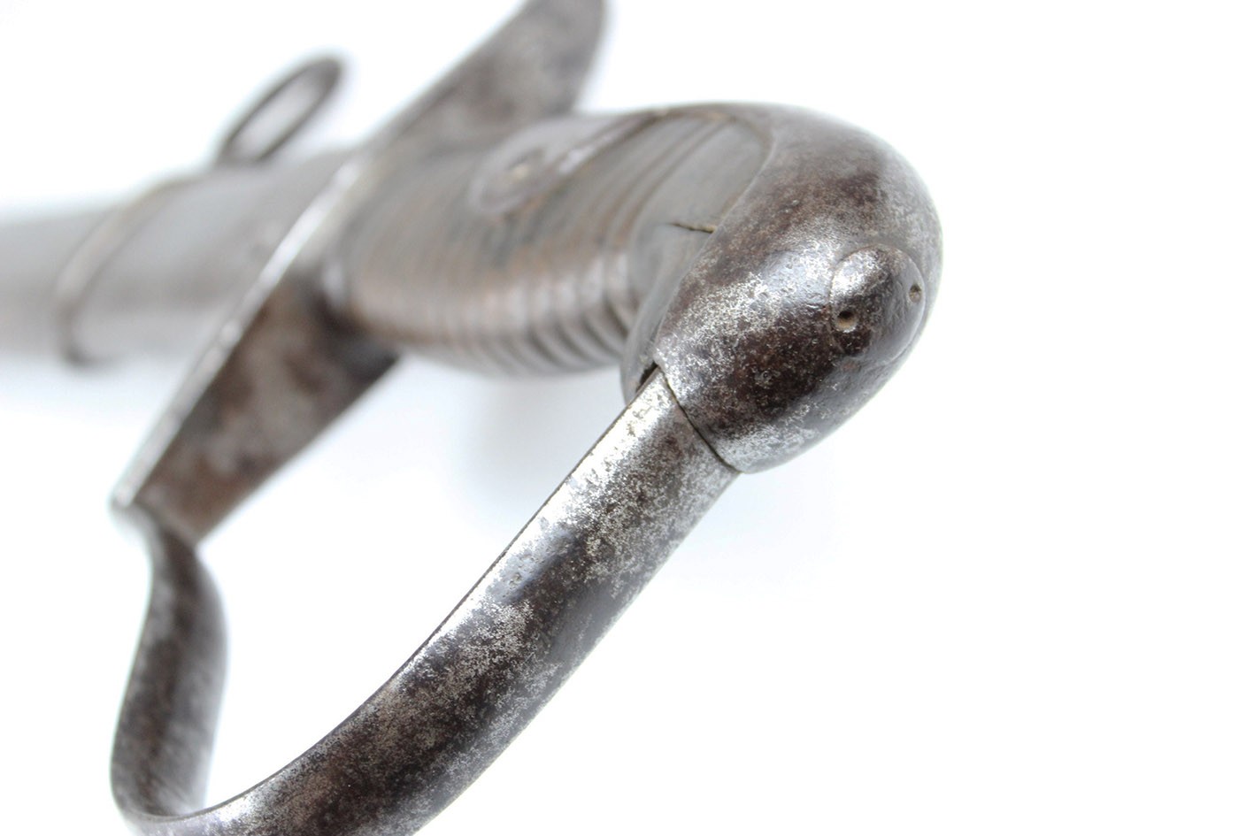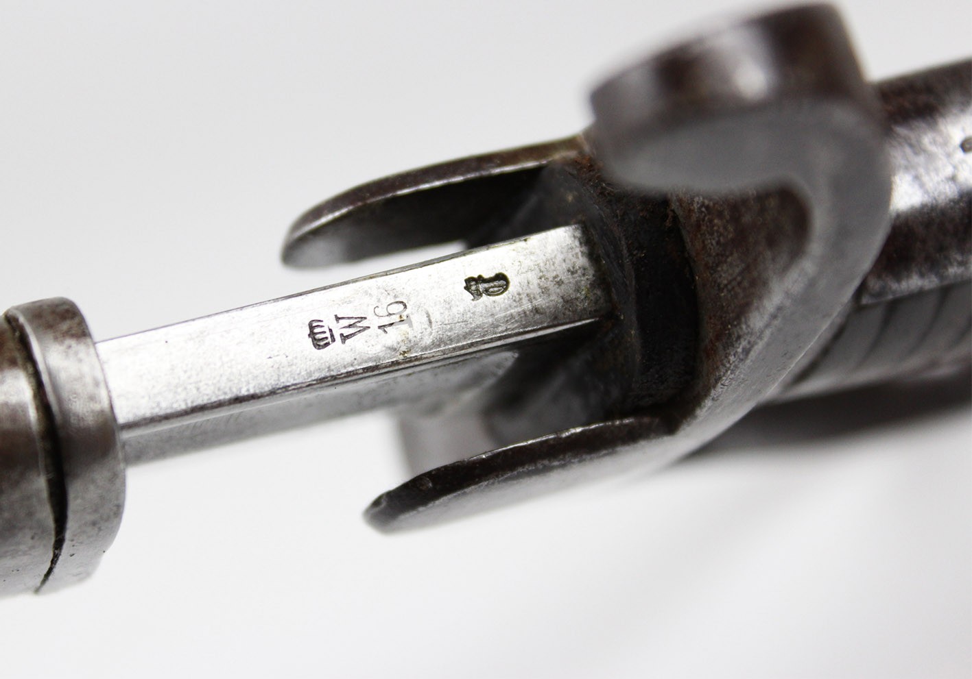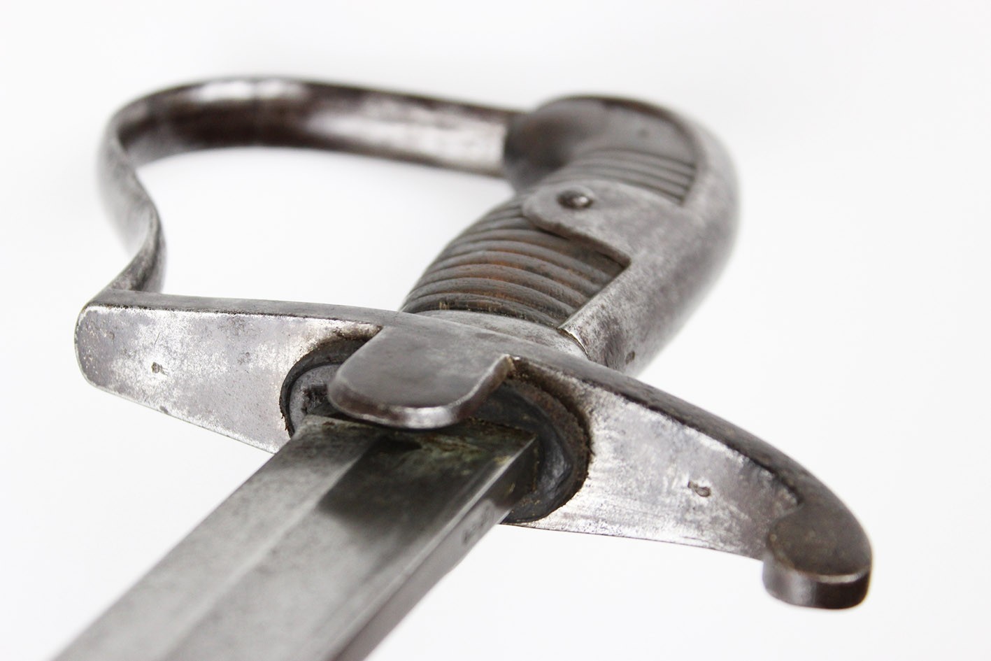 Pruska szabla artyleryjska neuer Art przyjęta na stan armii w 1916 roku. Głownia obustronnie szlifowana w jedną przygrzbietową bruzdę. Na progu nasady pod wąsem wybita marka firmy F.W. HOLLER. Na grzbiecie nasady wybite W pod koroną ( Wilhelm II), cyfra 16, oraz cecha kontroli technicznej. Rękojeść stalowa jednokabłąkowa. Uchwyt z ciemnobrązowego drewna. Pochwa z blachy stalowej z nieruchomym kółkiem nośnym i prostokątną antybabką. Szyjka pochwy zakończona kołnierzem i zabezpieczona po obu stronach wkrętami. Na szyjce pochwy wybite przekreślone oznaczenie pułkowe F.A.R.55. ( 55 Pułk Artylerii Polowej- 2 Turyngski) z drugiej strony R.A.R. 51 Pochwa i rękojeść w strychowym stanie zachowania z delikatną kaszką. Głownia pięknie zachowana, prosta. Jedynym mankamentem jest delikatne pęknięcie uchwytu widoczne na zdjęciach. Dokładnie to co na fotografiach.
