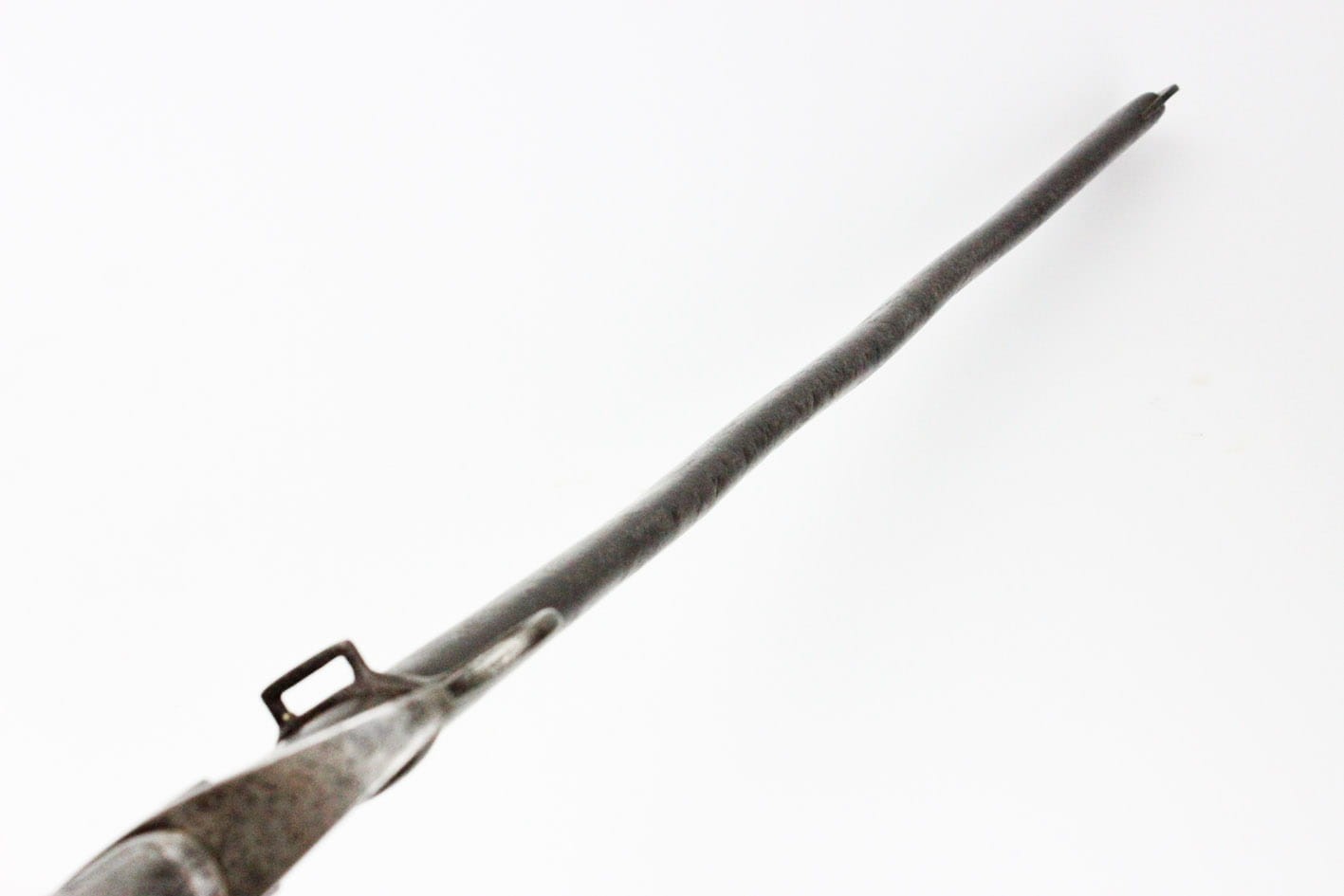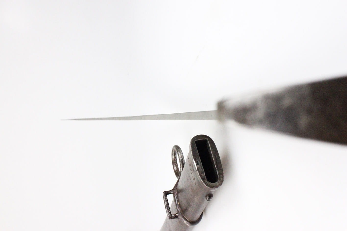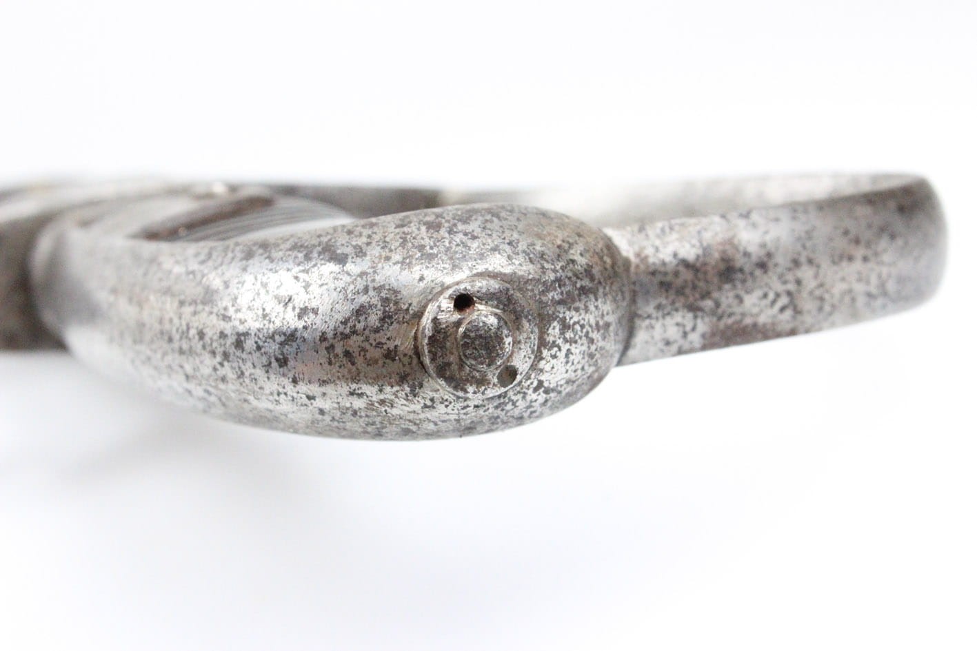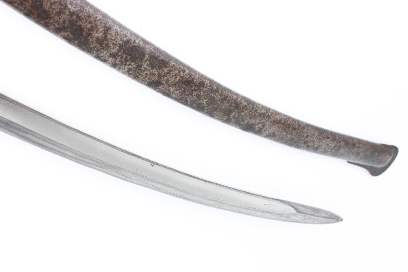 Pruska szabla artyleryjska neuer Art przyjęta na stan armii w 1915 roku a stosowana jeszcze do końca Republiki Weimarskiej. Głownie obustronnie szlifowana w jedną przygrzbietową bruzdę. Na progu nasady pod wąsem wybita marka firmy CLEMEN & JUNG SOLINGEN. Na grzbiecie nasady wybite W pod koroną ( Wilhelm II), cyfra 15 ( oznaczenie przyjęcia na stan armi w 1915 roku), oraz cecha kontroli technicznej. Rękojeść stalowa jednokabłąkowa. Po stronie zewnętrznej kabłąka rękojeści wybite oznaczenie 1920, wskazujące że szabla została zinwentaryzowana na mocy traktatu wersalskiego i po 1920 r. przyjęta do Weimarskiej Reichswehry. Uchwyt z ciemnobrązowego bakielitu. Pochwa z blachy stalowej z nieruchomym kółkiem nośnym i prostokątną antybabką. Szyjka pochwy zakończona kołnierzem i zabezpieczona po obu stronach wkrętami. Na szyjce pochwy wybite oznaczenie pułkowe 1.2.G.38.Pochwa i rękojeść w strychowym stanie zachowania z delikatną kaszką. Głownia pięknie zachowana, prosta. Dokładnie to co na fotografiach.