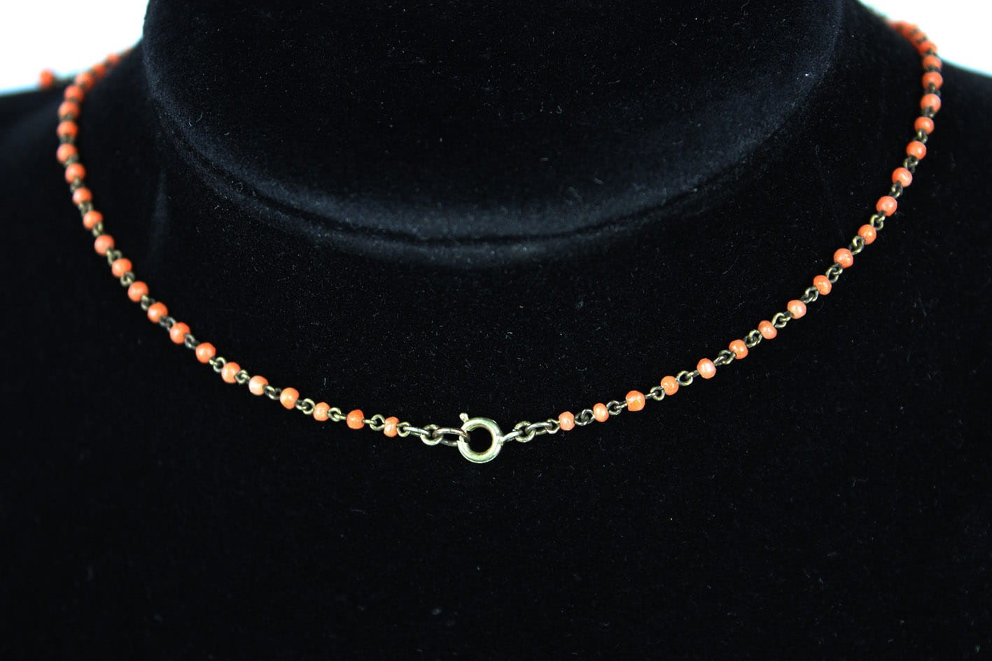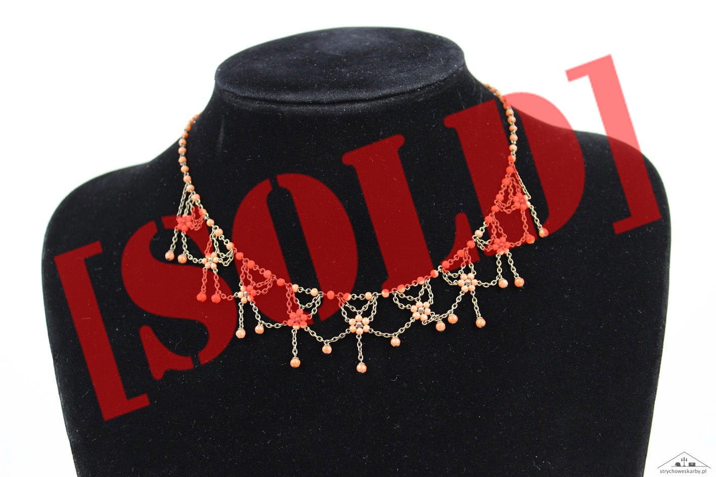 WIKTORIAŃSKI NASZYJNIK Z KORALEM SZLACHETNYM W ZŁOCONYM SREBRZE