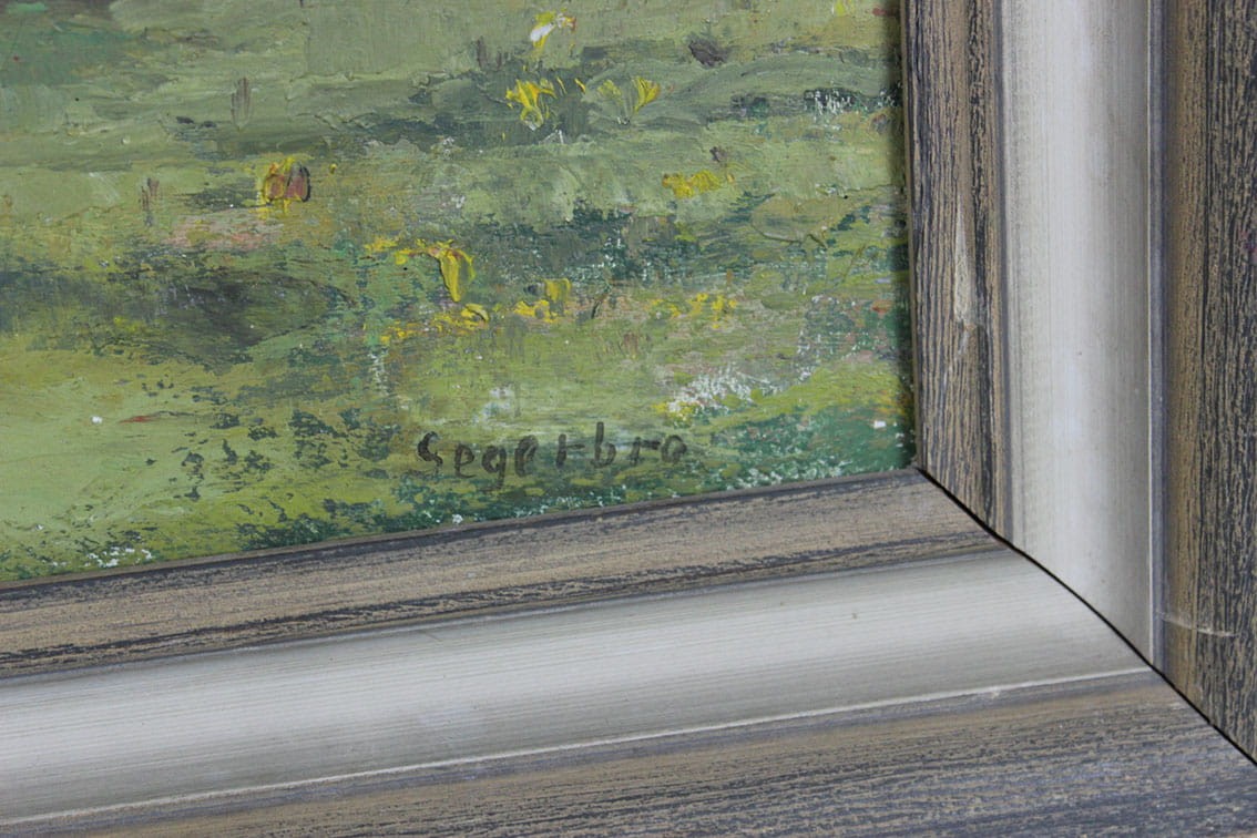 Okazały olejny obraz na płótnie w duchu impresjonizmu wykonany przez uznanego szwedzkiego artystę Carla Oskara Segerbro (1912-1980). Całość w drewnianej ramie. Wymiary: