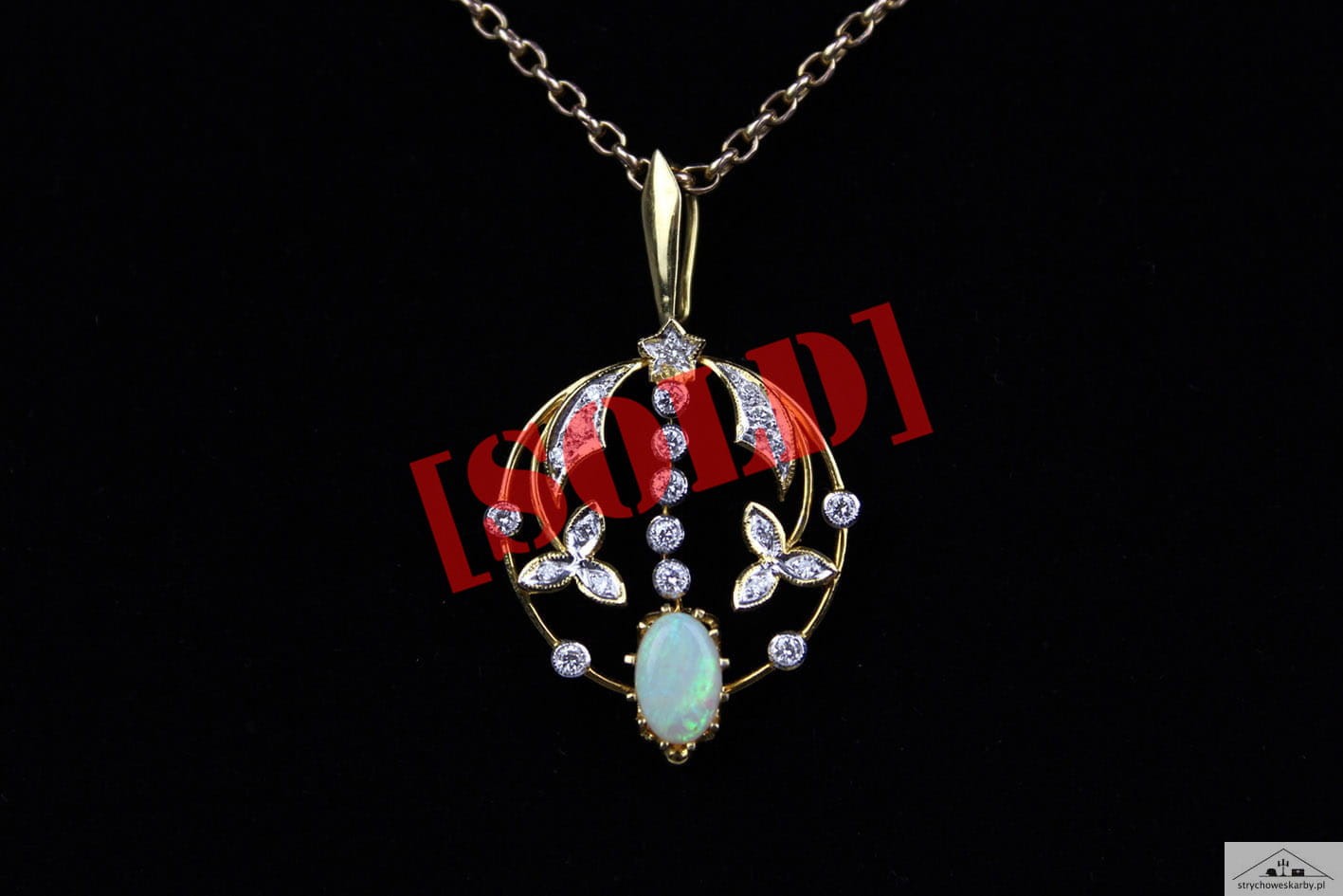 ZAWIESZKA SECESJA OPAL BRYLANTY ZŁOTO
