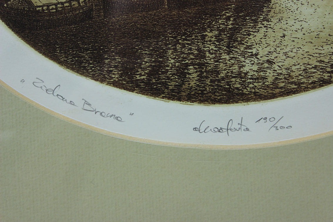 ZBIGNIEW BLEKIEWICZ "Zielona Brama" akwaforta. Egzemplarz 190/300. Podpisana przez artystkę w prawym dolnym rogu. Data 1997r.. Całość w passe partout, za szkłem w ramie. Wymiary: