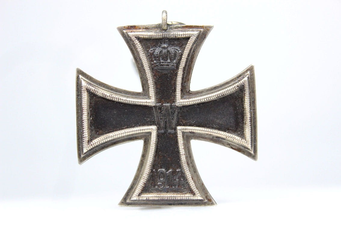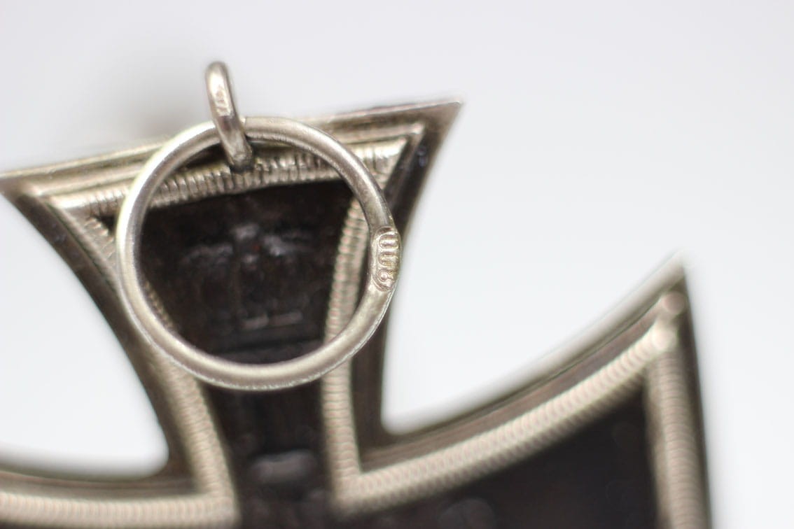 Oryginalny niemiecki Żelazny Krzyż z okresu I Wojny Światowej. Krzyż sygnowany na pierścieniu puncą srebra 800. Stan zachowania jak na załączonych fotografiach