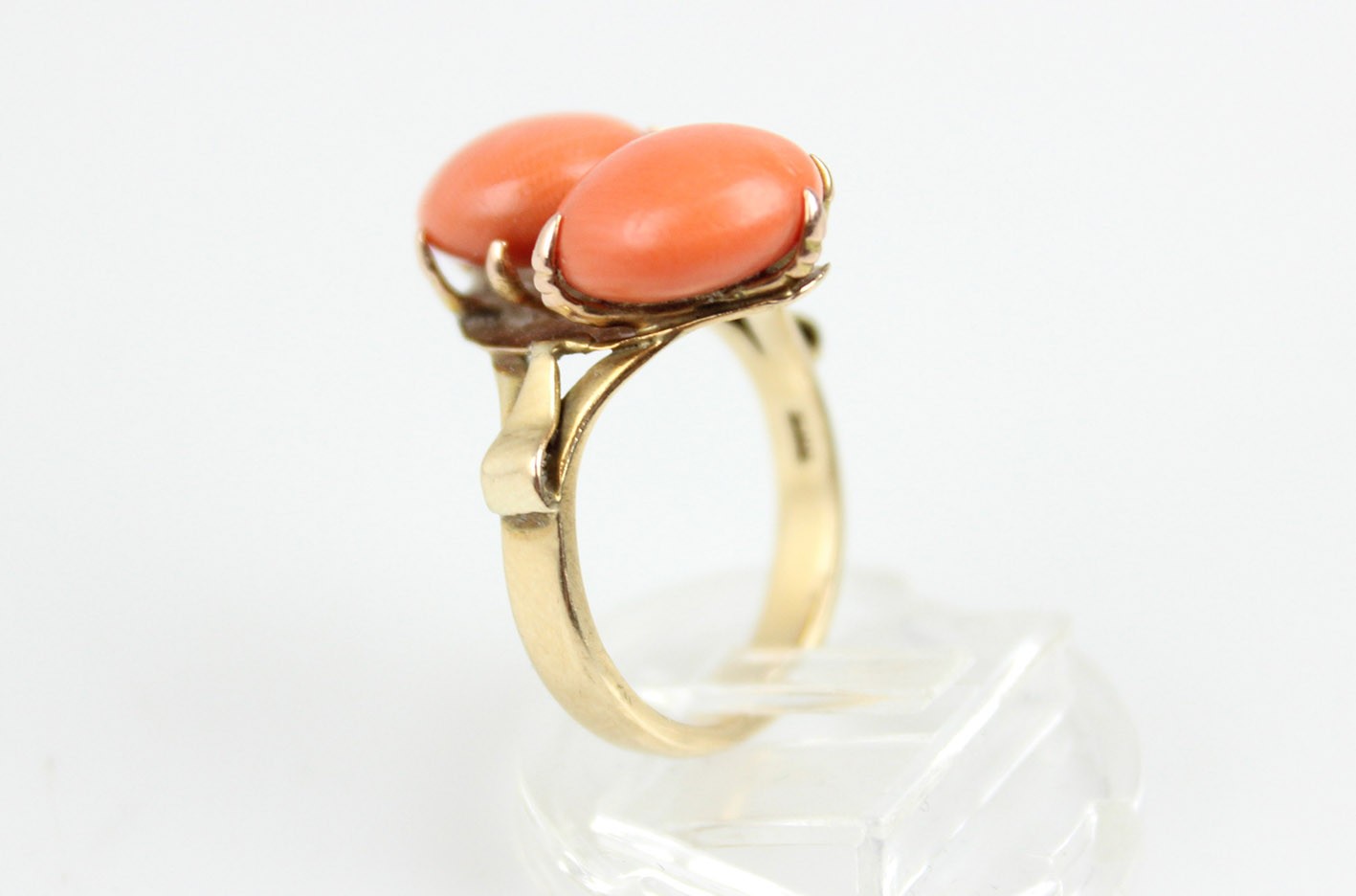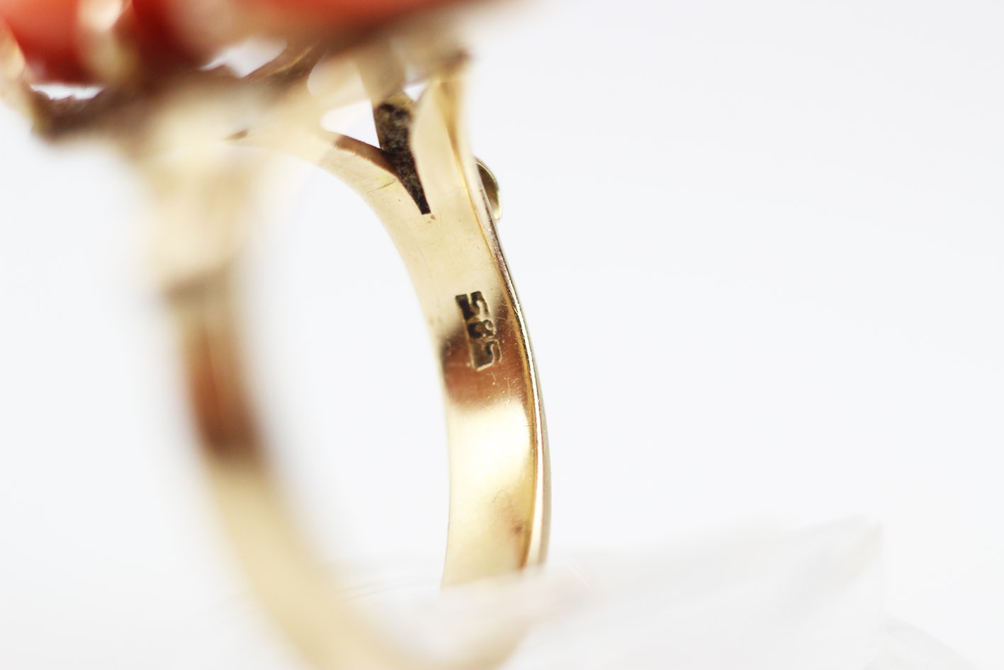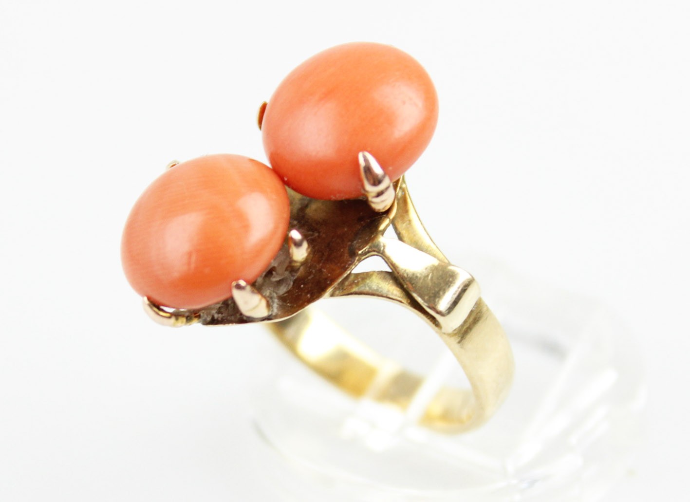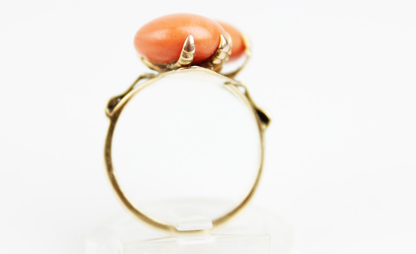 ZŁOTY PIERŚCIONEK RETRO Z KORALEM SZLACHETNYM R17