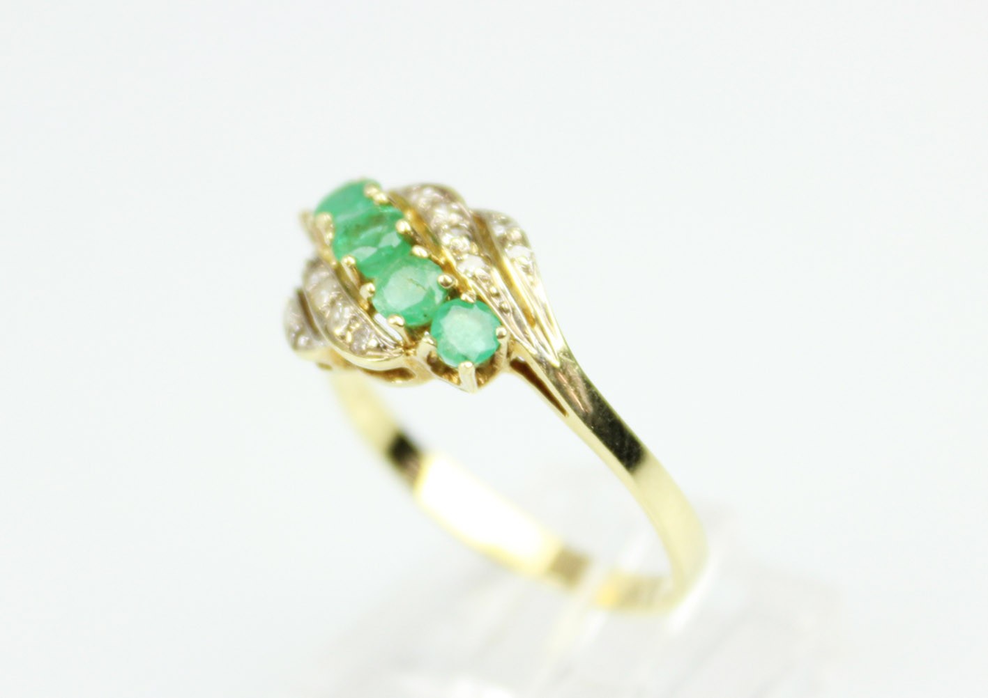 ZŁOTY PIERŚCIONEK ZE SZMARAGDAMI I DIAMENTAMI R21